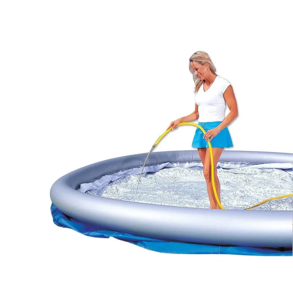 Make a splash with the H2OGO! Big Metallic 3-Ring Pool! This inflatable play pool is perfect for families with small backyard spaces, featuring a reflective metallic liner, transparent green sides, and a suitable depth for kids to splash around and play in. It easily inflates and deflates, making it simple to setup and store, and with a water capacity of 184 gallons, kids can enjoy hours of summer fun. Perfect for kids, ages 6 and up!Features:Additional Details: