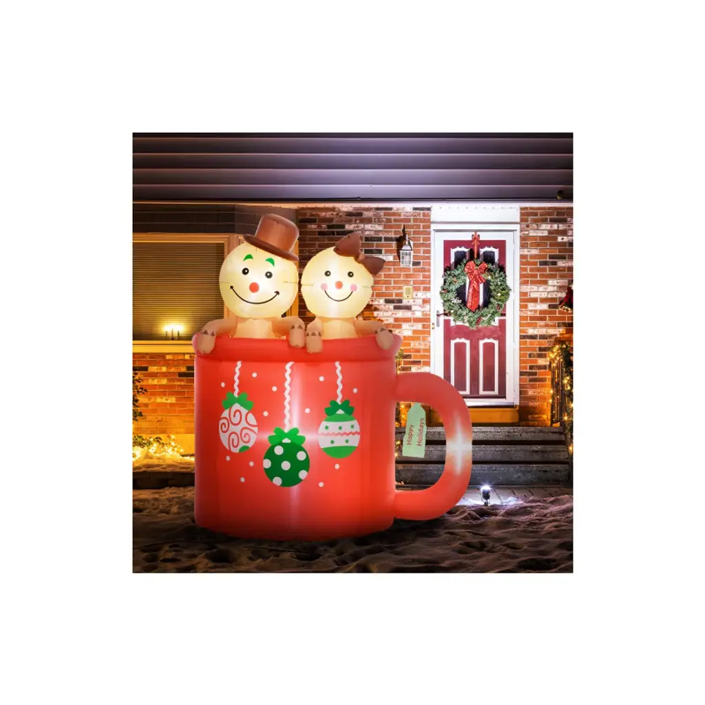 Hachikiko 6Ft Giant Christmas Inflatable Gingerbread Couple In Hot Cocoa Mug Outdoor/indoor Holiday Decor