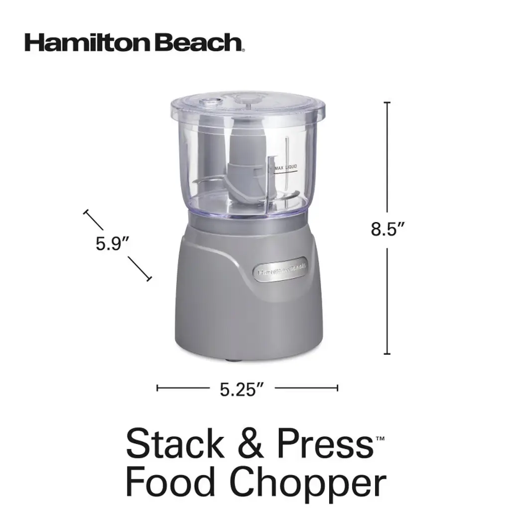 Hamilton Beach 3-cup Stack & Press Food Chopper - Gray - 72740: Compact Vegetable Processor, Dishwasher-safe Parts
