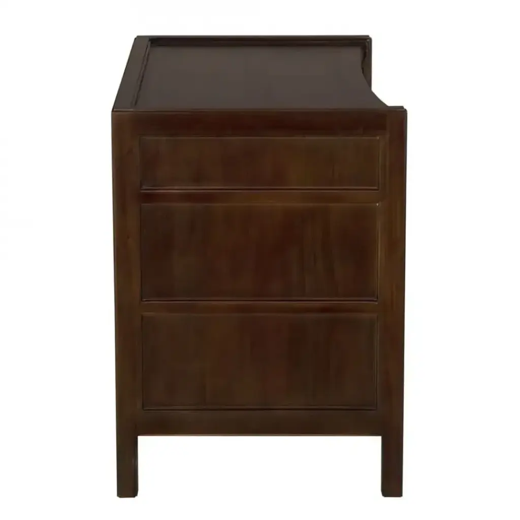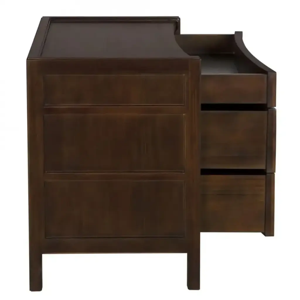 Available in both left and right formats, this gorgeous side table is designed to make maximum use of your space. Each has been handcrafted of mahogany and teak, and features two beautifully contrasting finishes that celebrate the wood. Two small drawers provide extra storage.