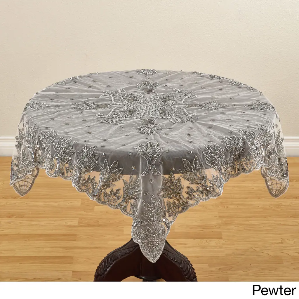 Adorn your table for special events or holidays with this intricate topper from Saro Lifestyle. The sheer polyester linen is hand-beaded and finished with scalloped edges. Choose from multiple colors and sizes to fit your decor needs.Features: