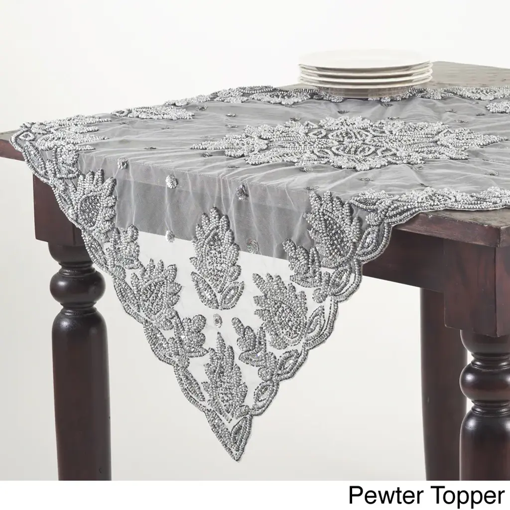 Adorn your table for special events or holidays with this intricate topper from Saro Lifestyle. The sheer polyester linen is hand-beaded and finished with scalloped edges. Choose from multiple colors and sizes to fit your decor needs.Features: