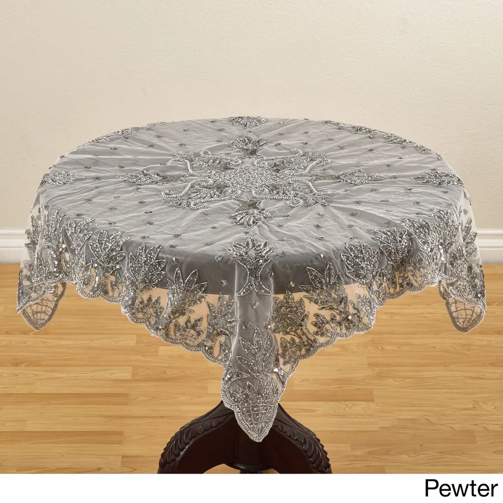 Hand-Beaded Table Topper - Pewter - 40" X 40" Topper