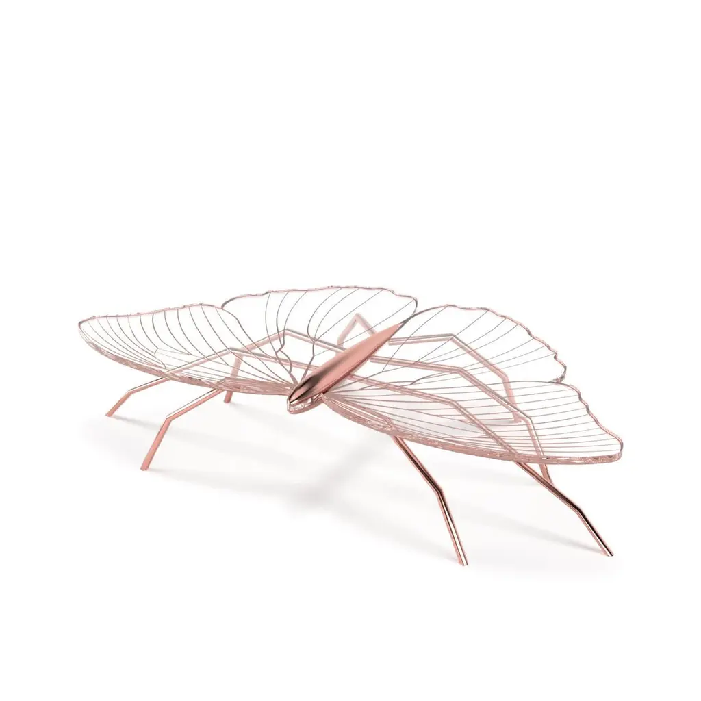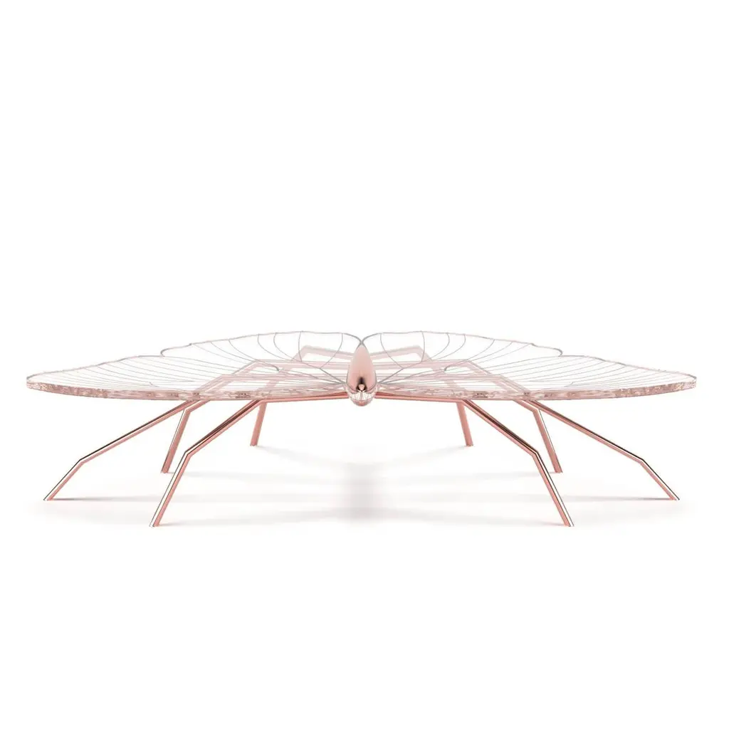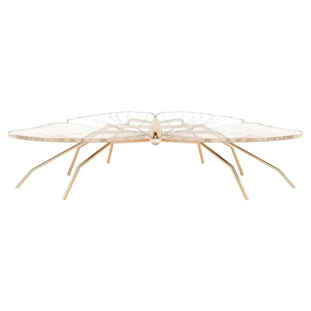 Our Nature Collection is eclectic and incomplete. We will always be waiting for Nature's next inspiration. The coffee table from this collection is butterfly-inspired, and the console from the same collection is dragonfly-inspired. Their unique and delicate designs are considered as beautiful as sculptures. The legs can be made of polished brass or polished copper. The tabletop is a thick acrylic plate laser-cut in the butterfly shape and then hand-painted with gold or copper paint and gold or copper flakes to match the legs' colour. With its polished finish, this coffee table takes some time to manufacture because the hand-painting and polishing operations are very time-consuming and require several work steps for surface preparation. The brass will be varnished to protect it from patina. The Nature Coffee Table´s manufacturing process is time-consuming. Due to the long hours of delicate construction, it is finished with meticulous attention to detail, resulting in exceptional craftsmanship.This listing is for a coffee table master-crafted in carefully selected brass. Brass is a beautiful metal used in delicate designs. It gives the furniture strength, durability and a vintage feel. Each piece is handmade by order, so we can manufacture it in endless combinations. Dimensions: Custom dimensions are available by request and only after analysis.We can also manufacture this piece with gold leaf. Gold leaf uses only pure gold and maintains its natural and intense brilliance for a long time because it does not oxidise.You can try it in your space using Augmented Reality with your mobile phone (Nature Collection, available on our website).Assembled piece. It will be delivered in a wooden box packed in bubble wrap.This piece is entirely made in Portugal and manufactured artisanally. The author carefully executed or supervised every process step in a small workshop context.Labour of love from Portugal.Designer/Author - Joao Faria/Emotional Objects.Manufacturer - Joao Faria/Emotional Objects.At Emotional Objects, we don't follow trends or fashion. Instead, we create distinct and timeless objects with solid ideas and concepts. Every Emotional Object has a meaningful story behind it. Made to last for generations, we proudly see our objects as future furniture classics that will stand the test of time.Working in Portugal with the best artisans, Joao Faria's work is difficult to distinguish between functional and fine art. He uses the finest materials and techniques, but most importantly, he only makes pieces he would want for himself.Art Furniture, Unique, Tailored, Emotional, Truly Yours.