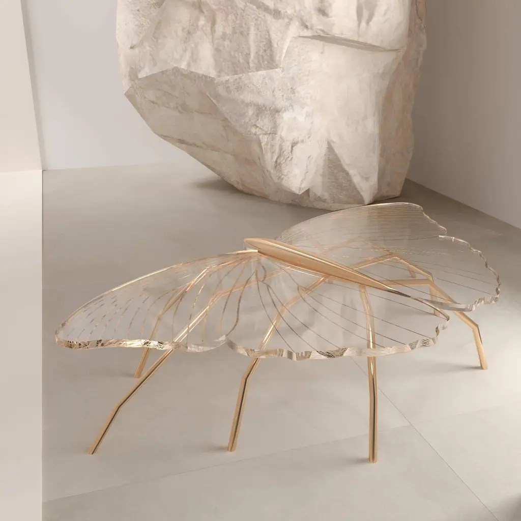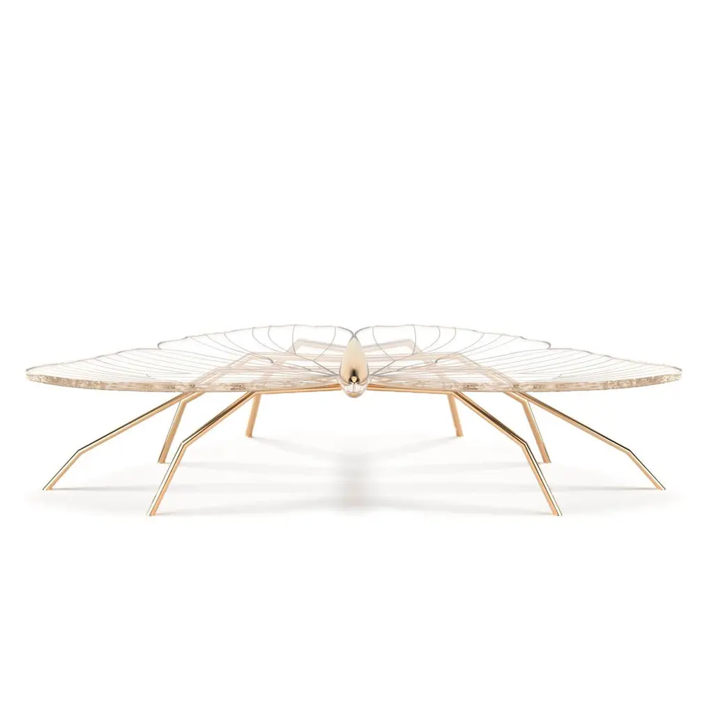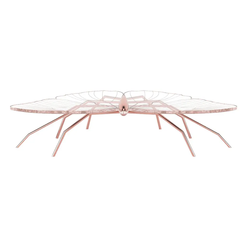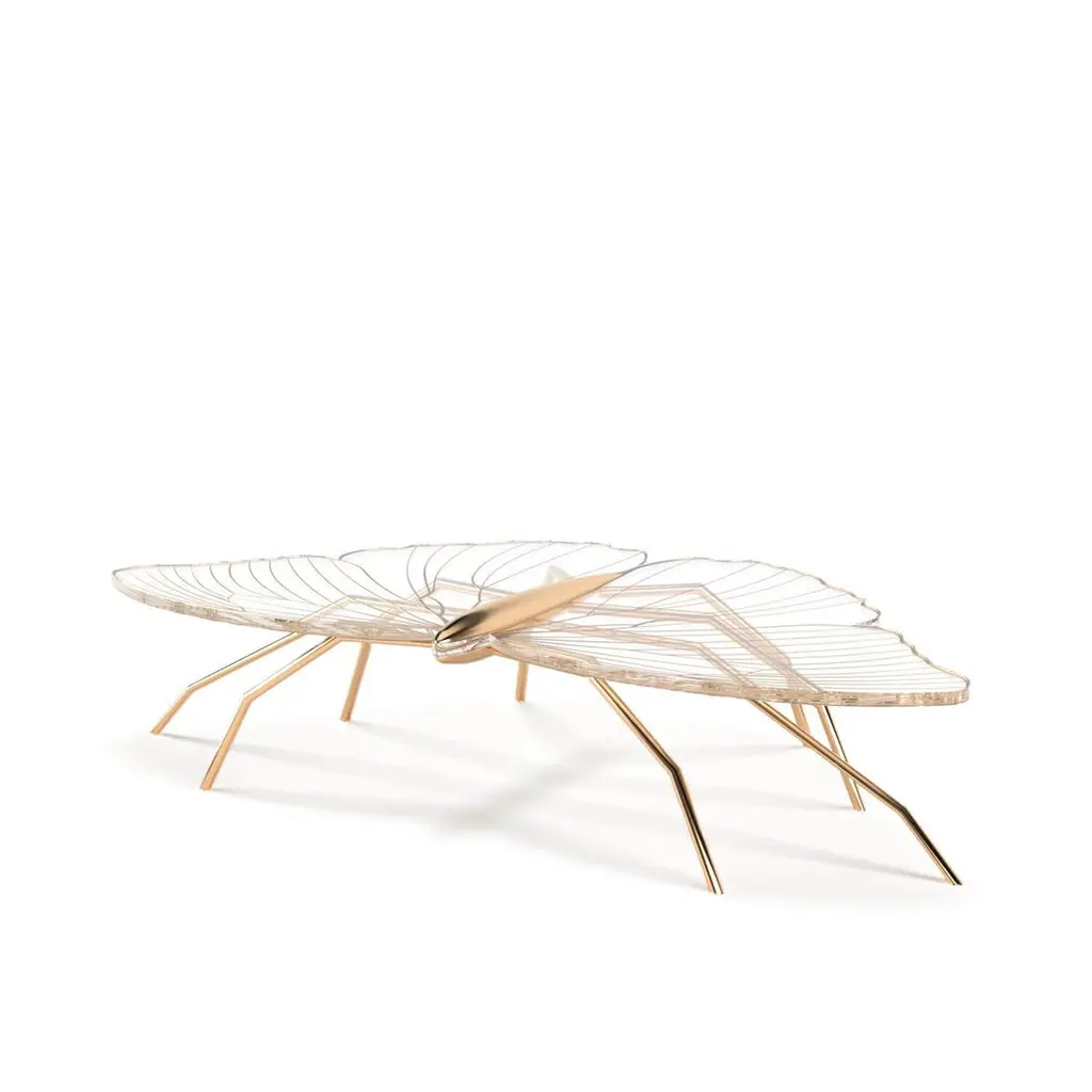Our Nature Collection is eclectic and incomplete. We will always be waiting for Nature's next inspiration. The coffee table from this collection is butterfly-inspired, and the console from the same collection is dragonfly-inspired. Their unique and delicate designs are considered as beautiful as sculptures. The legs can be made of polished brass or polished copper. The tabletop is a thick acrylic plate laser-cut in the butterfly shape and then hand-painted with gold or copper paint and gold or copper flakes to match the legs' colour. With its polished finish, this coffee table requires a significant amount of time to manufacture, as the hand-painting and polishing operations are both time-consuming and involve multiple work steps for surface preparation. The Nature Coffee Table´s manufacturing process is time-consuming. Due to the long hours of delicate construction, it is finished with meticulous attention to detail, resulting in exceptional craftsmanship.This listing is for a coffee table mastercrafted in carefully selected copper. Copper furniture is not just a trend; it will last a long time. It's perfect for creating a warm and inviting ambience in any space. Also, copper is 100% recyclable, eco-friendly, and highly durable. The copper will be varnished to protect it from patina.Dimensions: Custom dimensions are available by request and only after analysis.You can try it in your space using Augmented Reality with your mobile phone (Nature Collection, available on our website).Assembled piece. It will be delivered in a wooden box packed in bubble wrap.This piece is entirely made in Portugal and manufactured artisanally. The author carefully executed or supervised every process step in a small workshop context.Labour of love from Portugal.Designer/Author - Joao Faria/Emotional Objects.Manufacturer - Joao Faria/Emotional Objects.At Emotional Objects, we don't follow trends or fashion. Instead, we create distinct and timeless objects with solid ideas and concepts. Every Emotional Object has a meaningful story behind it. Made to last for generations, we proudly see our objects as future furniture classics that will stand the test of time.Working in Portugal with the best artisans, Joao Faria's work is difficult to distinguish between functional and fine art. He uses the finest materials and techniques, but most importantly, he only makes pieces he would want for himself.Art Furniture, Unique, Tailored, Emotional, Truly Yours.