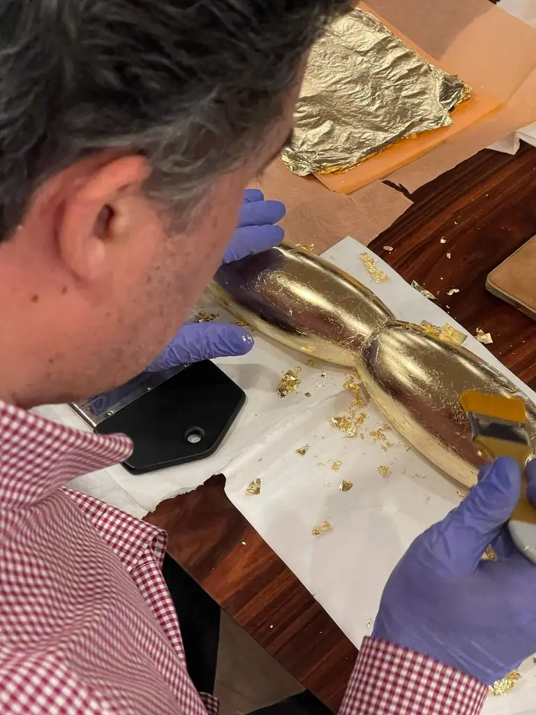 Our Nature Collection is eclectic and incomplete. We will always be waiting for Nature's next inspiration. The coffee table from this collection is butterfly-inspired, and the console from the same collection is dragonfly-inspired. Their unique and delicate designs are considered as beautiful as sculptures. Despite its delicate design and manufacturing, this console fulfils its function perfectly. The leg is mastercrafted with high-quality, resistant resin and coated with gold or copper leaf. The tabletop is a thick acrylic plate laser-cut in the dragonfly shape and then hand-painted with gold or copper paint with gold or copper flakes to match the leg's colour. This console table takes a long time to manufacture because the hand-painting and the gold leaf operations are very time-consuming and require several steps for surface preparation. Due to the long hours of delicate construction, it is finished with meticulous attention to detail, resulting in exceptional craftsmanship.This listing is for a console table master-crafted in carefully selected gold leaf, applied by hand, as seen in the photos. Gold leaf uses only pure gold and maintains its natural and intense brilliance for a long time because it does not oxidise.Each piece is handmade to order. Custom dimensions are available by request and only after analysis.We can also manufacture this piece with copper leaf. Copper furniture is not just a trend; it will last a long time. It's perfect for creating a warm and inviting ambience in any space. Also, copper is 100% recyclable, eco-friendly, and highly durable. The copper will be varnished to protect it from patina.Assembled piece. It will be delivered in a wooden box packed in bubble wrap.For extra security, the console must be nailed to the wall. We send all the hardware to attach it to the wall.This piece is entirely made in Portugal and manufactured artisanally. The author carefully executed or supervised every process step in a small workshop context.Labour of love from Portugal.Designer/Author - João Faria/Emotional Objects.Manufacturer - João Faria/Emotional Objects.At Emotional Objects, we don't follow trends or fashion. Instead, we create distinct and timeless objects with solid ideas and concepts. Every Emotional Object has a meaningful story behind it. Made to last for generations, we proudly see our objects as future furniture classics that will stand the test of time.Working in Portugal with the best artisans, Joao Faria's work is difficult to distinguish between functional and fine art. He uses the finest materials and techniques, but most importantly, he only makes pieces he would want for himself.Art Furniture, Unique, Tailored, Emotional, Truly Yours.