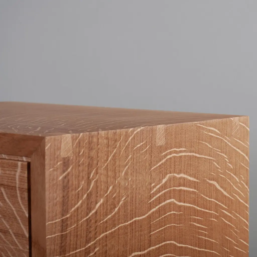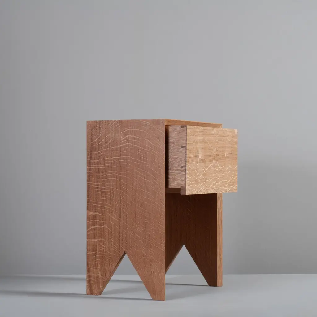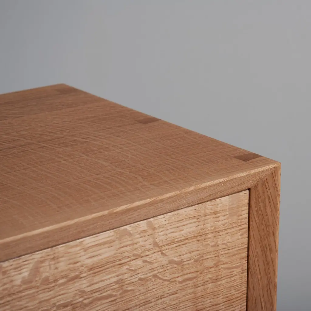 Our contemporary hand-crafted English quartersawn Oak night stand tables with storage drawer. Designed with precise minimalism in mind - whilst highlighting the handmade construction details with exposed mitred key dovetail jointing. The strict clean lines are additionally highlighted with the acute chamfer around the front framework. The drawers are constructed with the traditional hand cut dovetail joints.Each piece is bench-made in England with an emphasis on the natural beauty of the raw material used, the intentional visual impact of the construction details and clear mark of the craftspersons hand.Custom dimensions are available upon request. Also available in English Ash and American black Walnut - Please enquire for quotations.Sum Furniture employs traditional artisanal craftsmanship with some modern techniques, our love of modernism and architectural design to create unique, tactile and idiosyncratic work. We produce all our items using the finest timber and materials available and only output small runs, limited editions and one-off pieces.Bespoke and custom designed furniture made to order.
