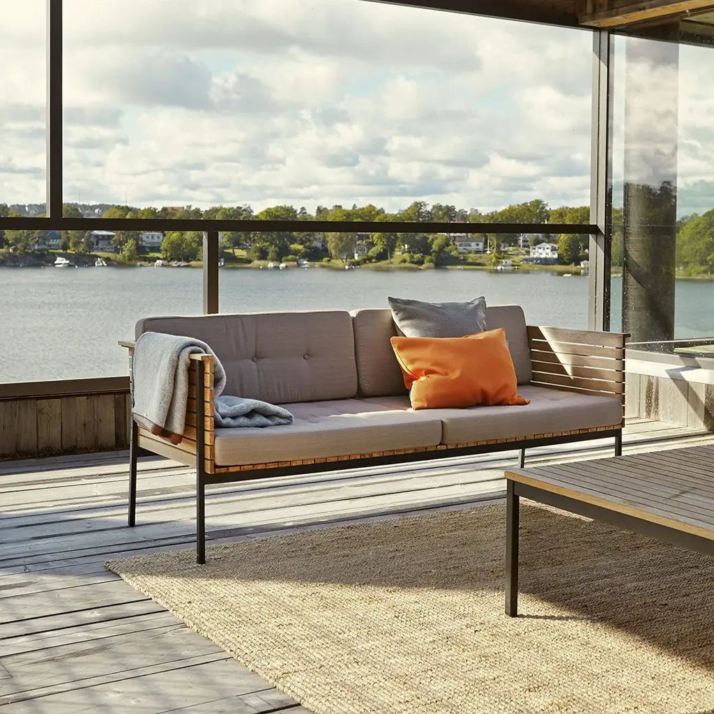 Haringe is a lounge range made in teak. Its frames feature brushed stainless steel or powder coated black. Haringe Lounge Table is available in two sizes, and is suitable for outdoor use.