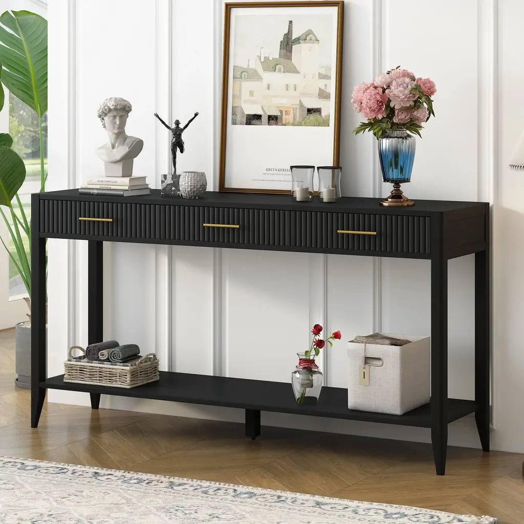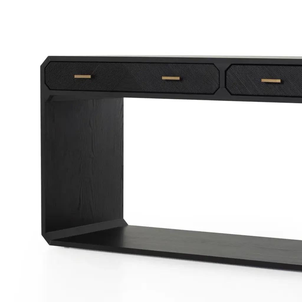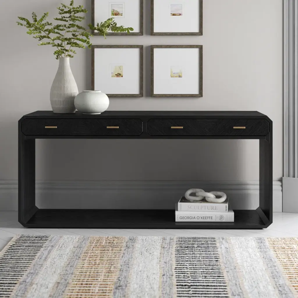 This console table is your new go-to for style and storage! Crafted from solid ash wood, it showcases a natural wood grain finish that brings a rustic vibe to your space. With two spacious drawers and an open shelf, it’s the perfect spot to tuck away keys, mail, or display your favorite decor. Whether you place it in your entryway or living room, this table combines form and function with ease. Why not make it the centerpiece of your home? Bonus: It arrives to you fully assembled.