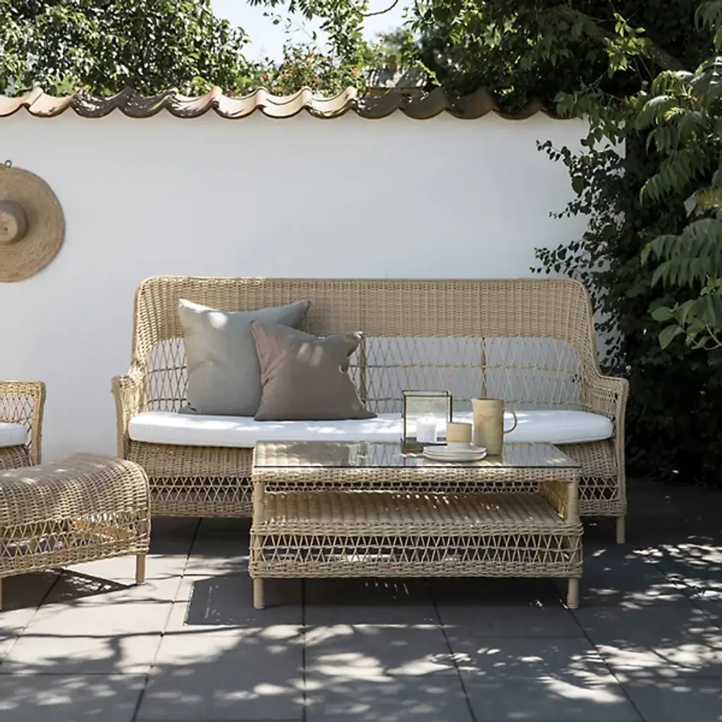 Classic and functional, the Hazel Outdoor Coffee Table by Sika Design is the perfect finishing touch for your outdoor patio seating group. Showcasing the signature open airy weave of the Georgia Garden collection, the two-tiered outdoor table has a tempered glass top and a lower shelf for storing books and magazines. Crafted from maintenance-free ArtFibre wicker on a powder-coated weather-proof AluRattan frame, the coffee table is durable enough for year-round outdoor use.