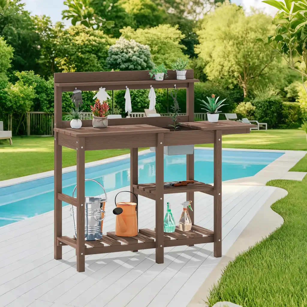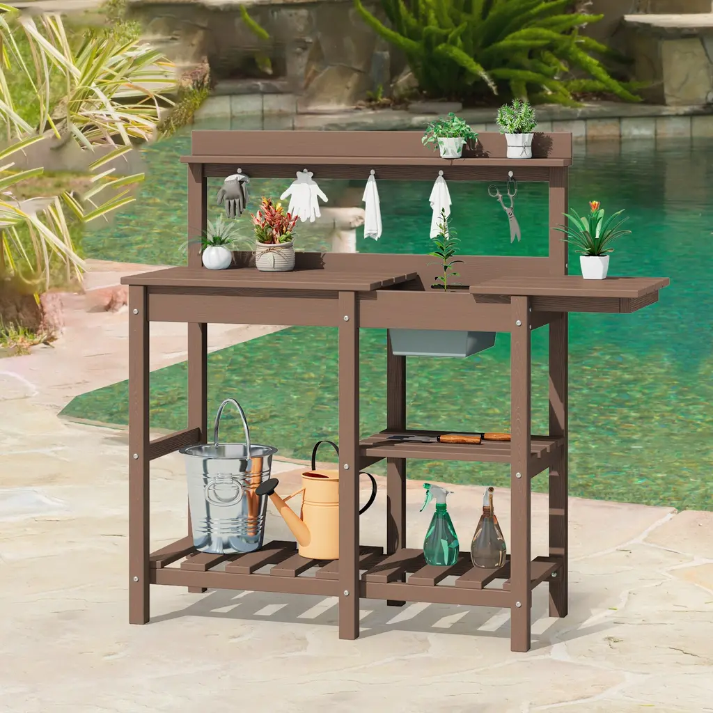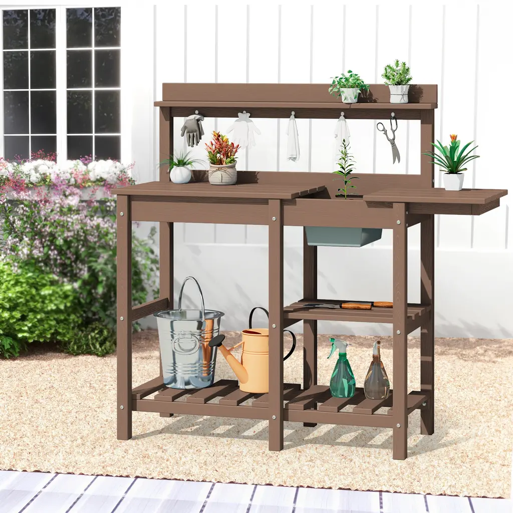 Hdpe Patio Outdoor Potting Table, Versatile Gardening Planting Workbench - Brown