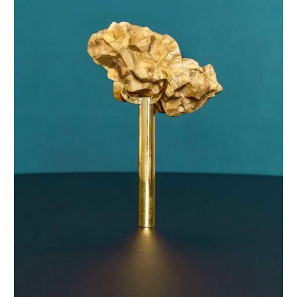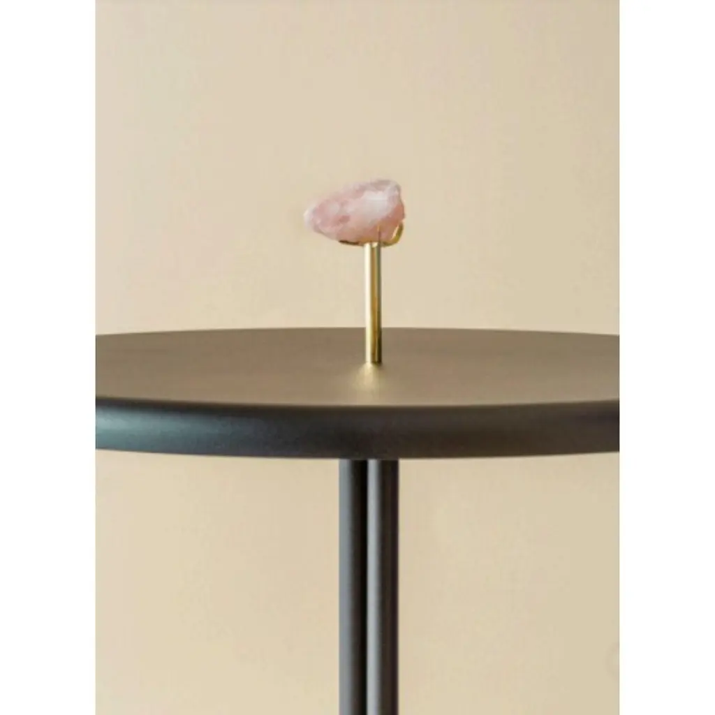Healing table by Tero Kuitunen.Material: natural stones, steel, brass.Dimensions: D45 x H65 cm.Limited edition of 3By putting an energy stone in the middle of a table I wanted to explore my own approach to the healing stones. My feelings are a bit torn and even ironic. I’m not sure do I believe in the healing powers of the stones but then again I can’t say with 100% certainty that they don’t work.Designer Tero Kuitunen, b. 1986, is inspired by the interface of design and art, the unprejudiced apposition of things, floating sceneries, and the meaning of humor and touch in design. Alongside product design, Tero is known for concept and space planning as well as memorable projects of contemporary art and design. He has graduated as a designer from the Applied Arts MA program at the Aalto University School of Art, Design and Architecture. Tero works as a product, concept and interior designer in projects for clients such as Supercell, Absolut Vodka, Hakola and many more. Currently Tero is working as a freelance designer with a vast experience in the design and art field. He has participated in international exhibitions and fairs in e.g. Beirut, Stockholm, Japan and Italy. 2019-2020 he curated and created the concept for Wild at Heart exhibition that toured to Vienna, Budapest, Stockholm, Tokyo and Helsinki. In 2021 Tero was invited to create together with Karoliina Hellberg and Raimo Saarinen a new exhibition at the prominent Amos Rex Museum. Tero has received a one-year working grant from the Finnish Cultural Foundation in 2017 and projects grands from Arts Promotion Centre Finland and City of Kotka.Throughout his work, Tero wants to find something that moves and touches people. Materials and colours are often his biggest inspiration when starting a new design project.