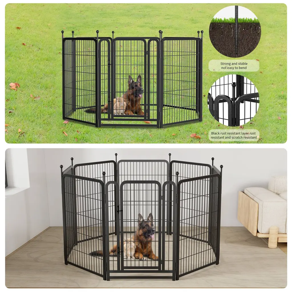Heavy Duty 40" Dog Playpen, Anti-Rust 8 Panels, Portable Pet Exercise Fence With Door, Suitable For All Dog Sizes - Black - Large