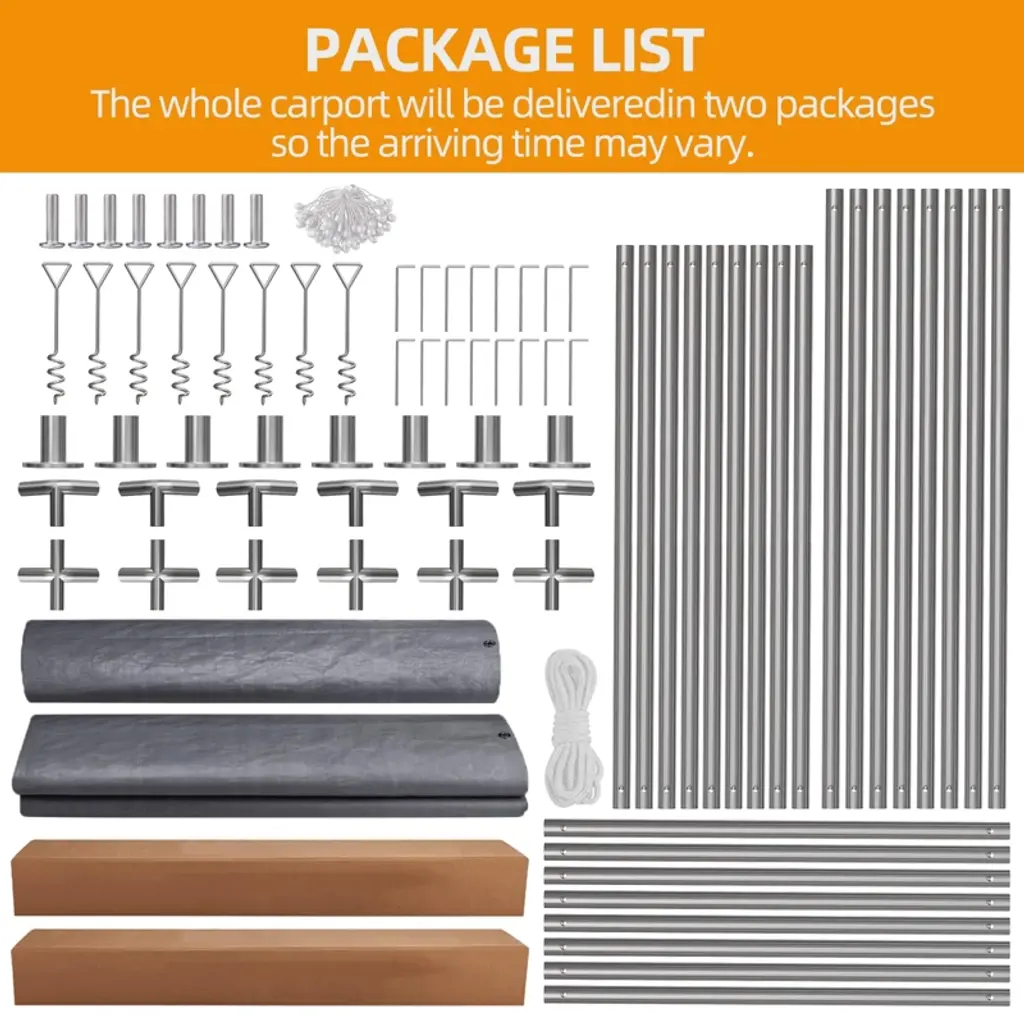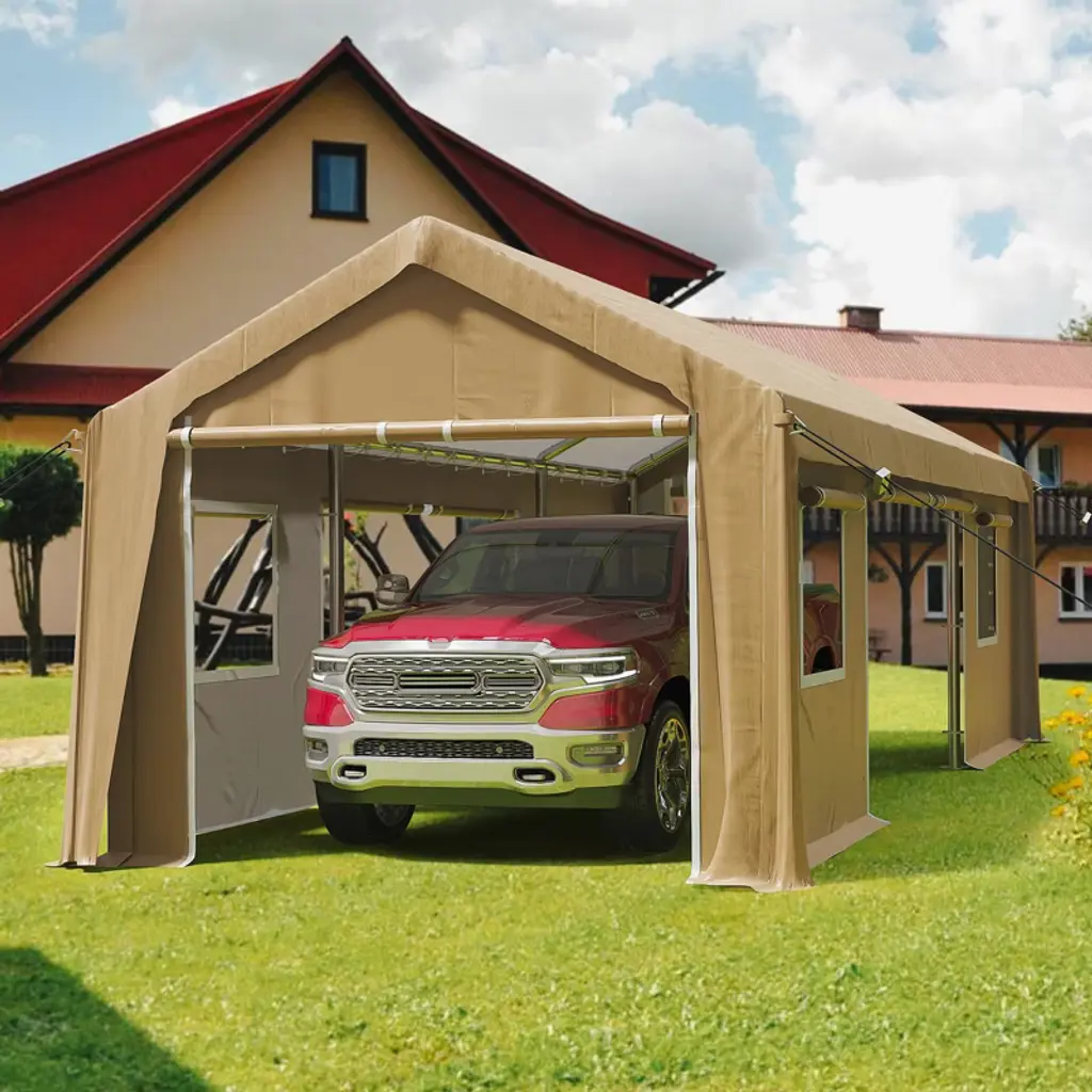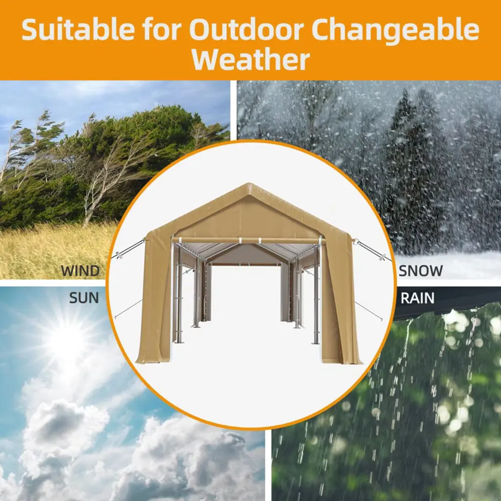 Heavy Duty Carport 13'x20'Portable Garage 4 Roll-up Doors & 4 Windows Waterproof Carport Canopy for Car Truck Boat, Earthy Yellow