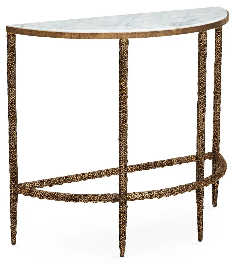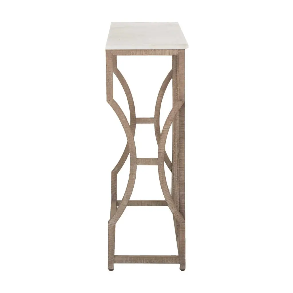 The Helen Console Table is a perfect embodiment of mastery over artful forms and shapes, presenting a mesmerizing play of converging wooden arches inspired by the bold geometric patterns of Art Deco design. Crafted with a blend of natural materials and architectural finesse, this table offers a striking addition to any space. Natural materials give this product its unique charm, with variations in color and pattern to be anticipated and celebrated.