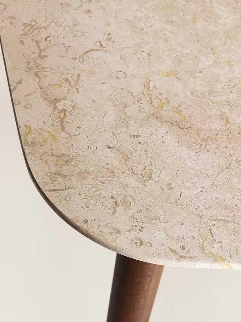 Helio is a table with wood structure and Beige corallo marble top.These are the second-generation tables, aimed at a public attentive to new trends in the home.