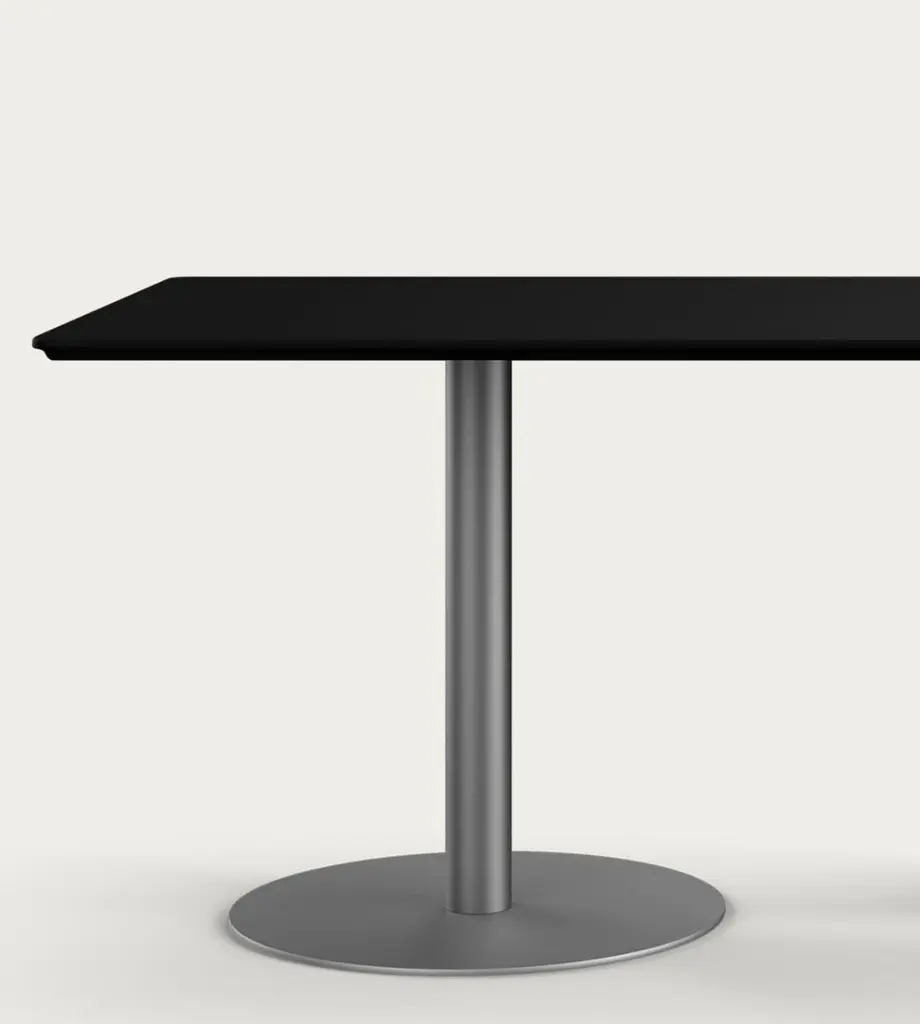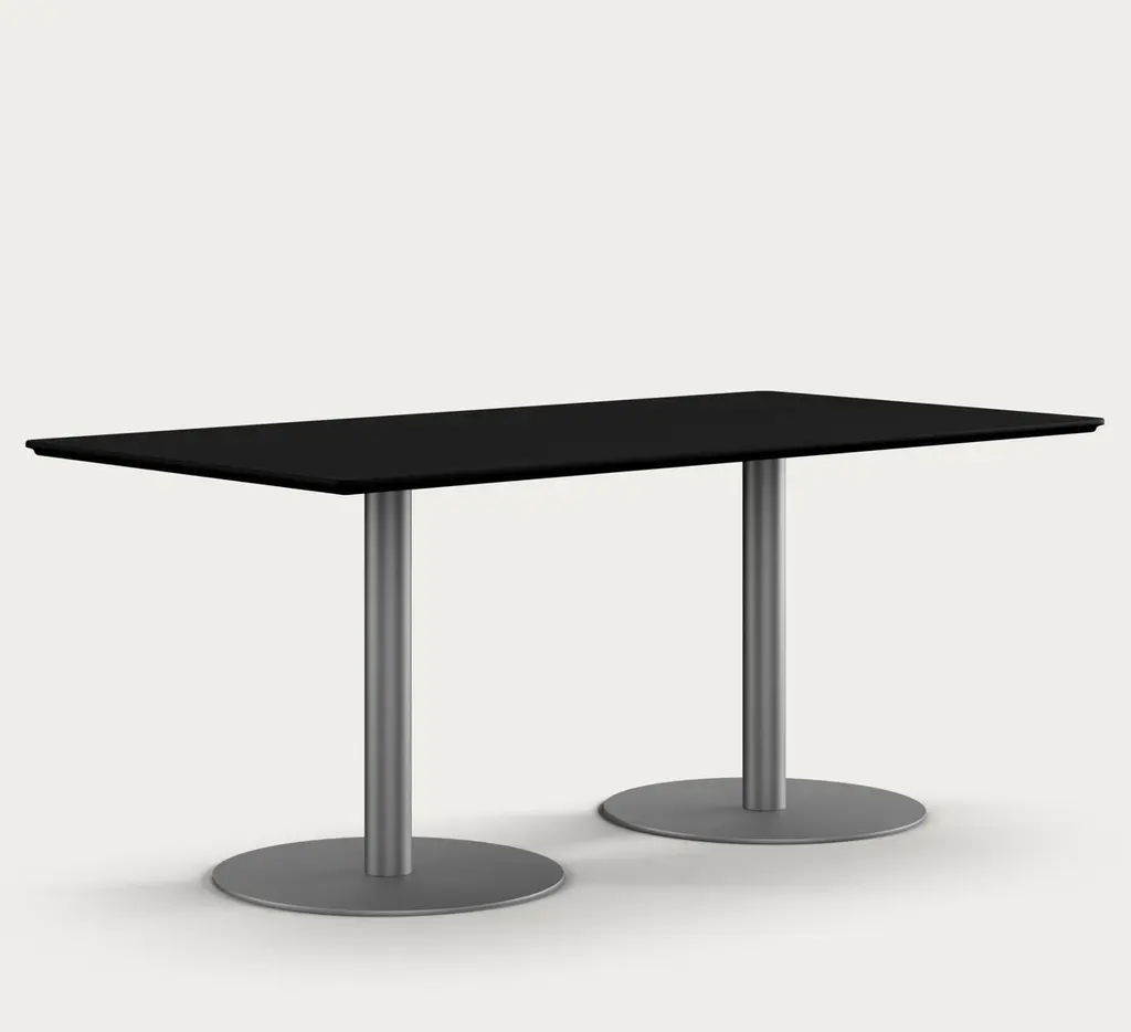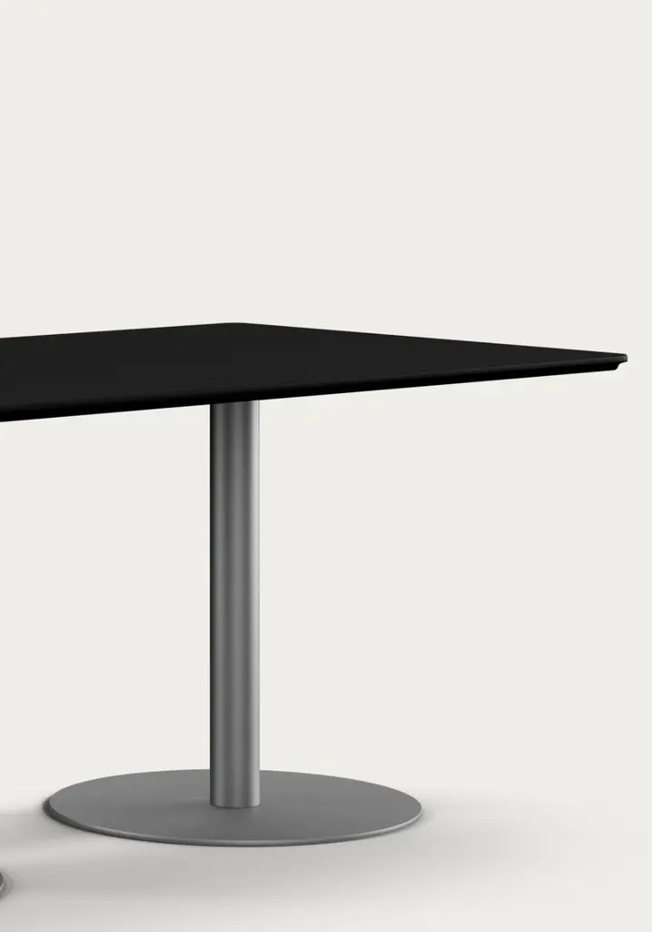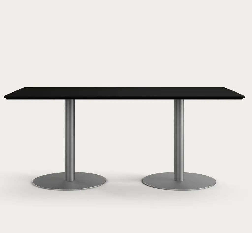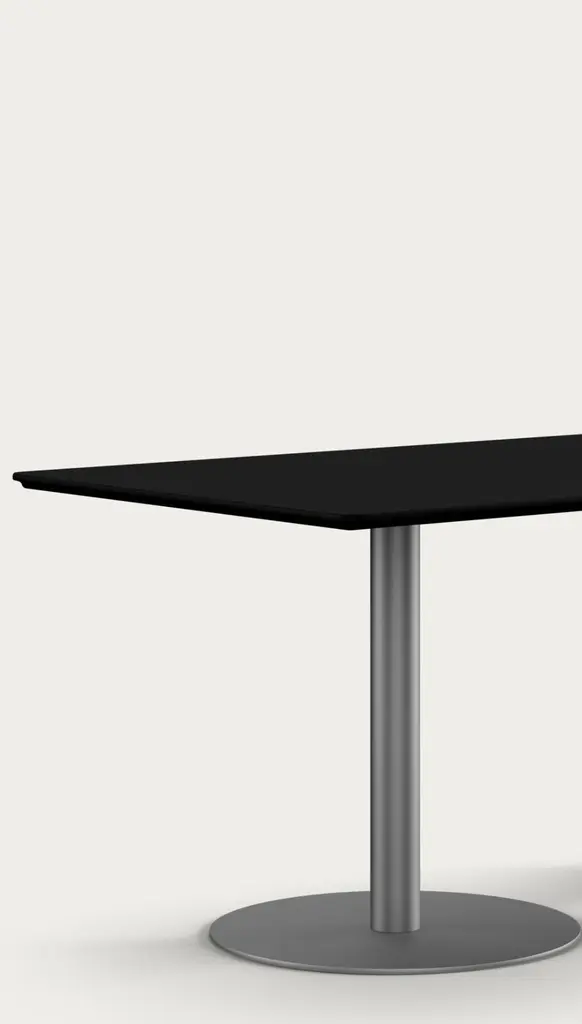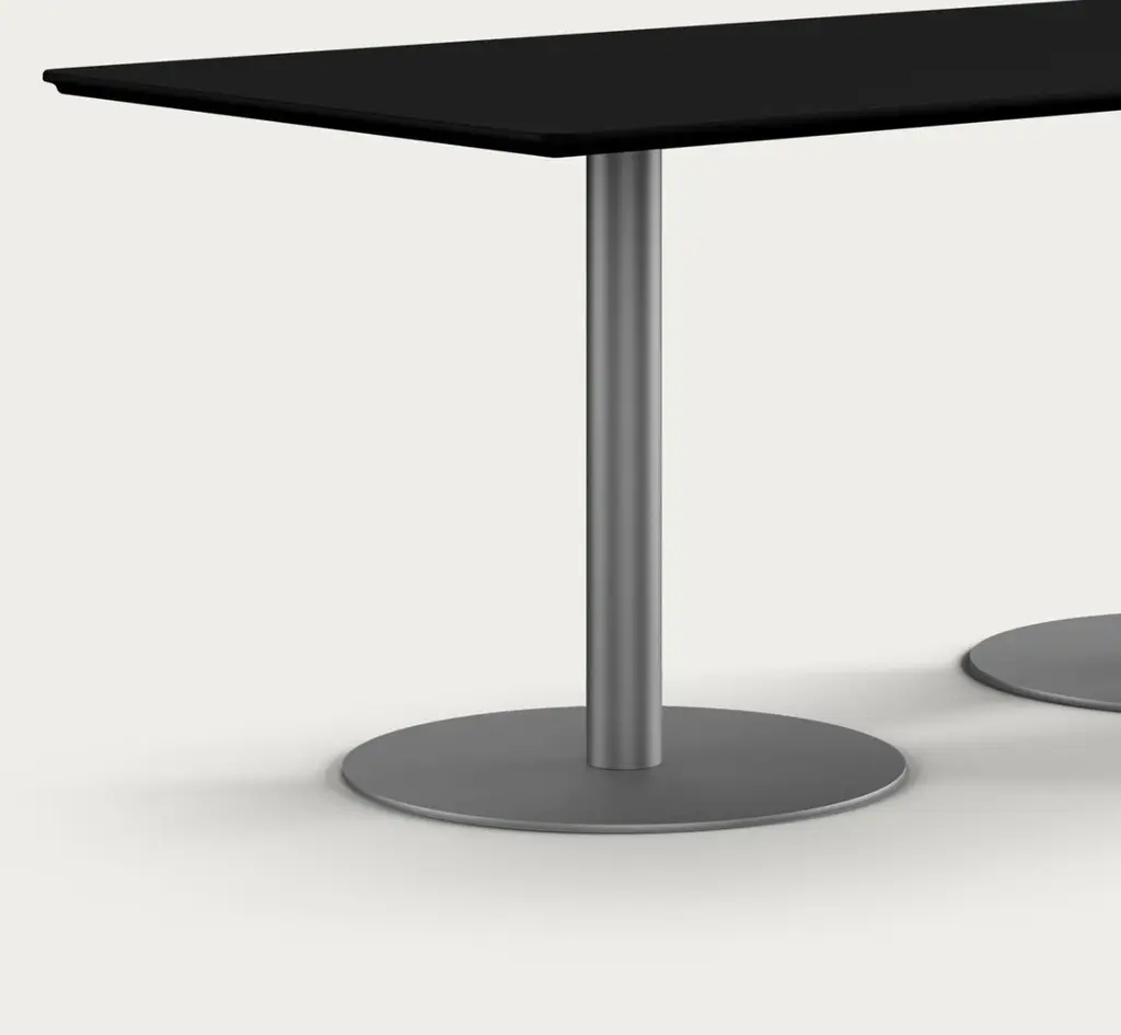 Henrik Tengler Train Conference Table Leg: Graphite, Tabletop: Linoleum Black For One Collection.As a prominent feature of the Train Table Series, originally created in 2004 by Henrik Tengler, the Train Conference Table is a testament to versatility and multifunctionality. Designed to cater to the unique demands of conference rooms, meeting areas, and collaborative spaces, this conference table version combines aesthetic elegance with practical functionality.The tabletop offers a variety of choices, including linoleum, laminate, and veneers in rich materials such as teak, oak, ash, or walnut, accommodating diverse tastes and design requirements. The base of the table is available in either powder-coated steel or brushed stainless steel, allowing for customization to suit the specific decor and ambiance of the conference space.General InfoDesign by: Henrik TenglerYear: 2004Dimensions:Tabletop: HT911580 cm x 150 cmPedestal Foot: HT 9667SSØ: 50 cm x H: 71 cmTabletop: HT 921890 cm x 180 cmPedestal Foot: HT 9667SSØ: 60 cm x H: 71 cmTabletop: HT 9201110 cm x 220 cmPedestal Foot: HT 9664SSØ: 70 cm x H: 71 cmDifferent tabletops and pedestals can be combined in almost endless ways. All elements are listed individually in the product sheet.SpecificationsModel and materials:Tabletop: Linoleum, laminate, or veneers in teak, oak, ash, or walnut.Pedestal Foot: Powder-coated steel or brushed stainless steel.The Train Series reflects Henrik Tengler’s meticulous attention to detail, drawing inspiration from Finn Juhl’s design ethos as exemplified by his famous Silver Table. Tengler’s focus on subtle yet significant features, such as the edge profiles and the gentle corners, infuses the table with an understated elegance. The Train Conference Table is characterized by its exquisite organic edge profile, giving it soft corners and edges that enhance its visual appeal, making it a sophisticated addition to any professional setting.Important information regarding images of products:Please note that some of the images show other colors and variations of the model, these images are only to present interior design proposals. The item that is selling is on the first image.Important information regarding color(s) of products:Actual colors may vary. This is due to the fact that every computer monitor, laptop, tablet and phone screen has a different capability to display colors and that everyone sees these colors differently. We try to edit our photos to show all of our products as life-like as possible, but please understand the actual color may vary slightly from your monitor.About Designer: Henrik Tengler graduated from The Royal Danish Academy of Fine Arts in 1988 and has more than 26 years of experience with furniture design and interior design. In 1992 Onecollection put the first chair from Henrik Tengler into production. The chair named Chairman later on became Onecollection’s best selling piece of furniture with more than 50.000 sold to date.About Henrik TenglerHenrik Tengler has frequently contributed to what characterizes Onecollection’s furniture collection – stylish, yet functional quality designs. Over the years Henrik Tengler has created innovative and timeless solutions, whether it has been furniture or interior projects around the world.Henrik Tengler has also designed the tableseries Train, eZone and the Time Chair which have become classics for modern offices and conference rooms.About Manufacture:From our location in a small spot as far west as you can go in Denmark, we’ve captivated clients worldwide, ensuring they believe in our projects. While our journey encountered its share of challenges, our unwavering passion and enthusiasm have continuously persuaded stakeholders, including initially skeptical banks, to support us. This perpetual commitment and belief in OneCollection are why our presence continues to thrive today.Established by Ivan Hansen and Hans Henrik Sørensen in 1990, the main ownership remains with the two founders who guide a team passionately dedicated to the values and mission of the company.From the very beginning, our journey has been self-propelled, building a reputable furniture business grounded in core principles such as passion, quality, collaboration, trust, and humour. Our depth of knowledge in the furniture industry and exceptional Danish furniture design has been pivotal, coupled with a perpetual desire to work autonomously, ensuring freedom and responsibility in our decision-making processes.Driven by a perpetual ambition to elevate OneCollection as one of Denmark’s paramount design companies, we have always strived for excellence in crafting culturally significant, high-standard furniture designs. Our path has often strayed from the conventional, embracing a unique and sometimes unacademic approach, fueling our journey through intuition and courage to stand alone when necessary.Envisioning our future, we stand firmly as a free and independent company, opting for organic growth that is firmly rooted in our values.