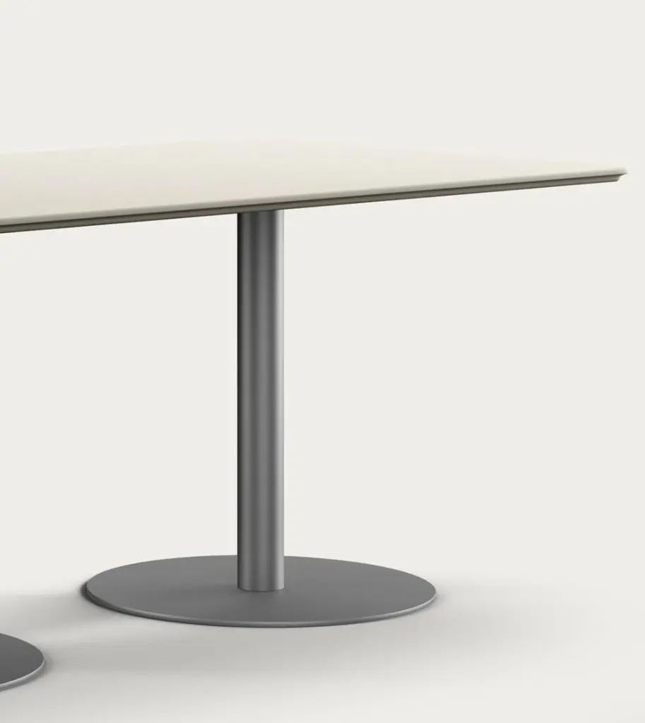Henrik Tengler Train Conference Table Leg: Graphite, Tabletop: Linoleum Mushroom For One Collection.As a prominent feature of the Train Table Series, originally created in 2004 by Henrik Tengler, the Train Conference Table is a testament to versatility and multifunctionality. Designed to cater to the unique demands of conference rooms, meeting areas, and collaborative spaces, this conference table version combines aesthetic elegance with practical functionality.The tabletop offers a variety of choices, including linoleum, laminate, and veneers in rich materials such as teak, oak, ash, or walnut, accommodating diverse tastes and design requirements. The base of the table is available in either powder-coated steel or brushed stainless steel, allowing for customization to suit the specific decor and ambiance of the conference space.General InfoDesign by: Henrik TenglerYear: 2004Dimensions:Tabletop: HT911580 cm x 150 cmPedestal Foot: HT 9667SSØ: 50 cm x H: 71 cmTabletop: HT 921890 cm x 180 cmPedestal Foot: HT 9667SSØ: 60 cm x H: 71 cmTabletop: HT 9201110 cm x 220 cmPedestal Foot: HT 9664SSØ: 70 cm x H: 71 cmDifferent tabletops and pedestals can be combined in almost endless ways. All elements are listed individually in the product sheet.SpecificationsModel and materials:Tabletop: Linoleum, laminate, or veneers in teak, oak, ash, or walnut.Pedestal Foot: Powder-coated steel or brushed stainless steel.The Train Series reflects Henrik Tengler’s meticulous attention to detail, drawing inspiration from Finn Juhl’s design ethos as exemplified by his famous Silver Table. Tengler’s focus on subtle yet significant features, such as the edge profiles and the gentle corners, infuses the table with an understated elegance. The Train Conference Table is characterized by its exquisite organic edge profile, giving it soft corners and edges that enhance its visual appeal, making it a sophisticated addition to any professional setting.Important information regarding images of products:Please note that some of the images show other colors and variations of the model, these images are only to present interior design proposals. The item that is selling is on the first image.Important information regarding color(s) of products:Actual colors may vary. This is due to the fact that every computer monitor, laptop, tablet and phone screen has a different capability to display colors and that everyone sees these colors differently. We try to edit our photos to show all of our products as life-like as possible, but please understand the actual color may vary slightly from your monitor.About Designer: Henrik Tengler graduated from The Royal Danish Academy of Fine Arts in 1988 and has more than 26 years of experience with furniture design and interior design. In 1992 Onecollection put the first chair from Henrik Tengler into production. The chair named Chairman later on became Onecollection’s best selling piece of furniture with more than 50.000 sold to date.About Henrik TenglerHenrik Tengler has frequently contributed to what characterizes Onecollection’s furniture collection – stylish, yet functional quality designs. Over the years Henrik Tengler has created innovative and timeless solutions, whether it has been furniture or interior projects around the world.Henrik Tengler has also designed the tableseries Train, eZone and the Time Chair which have become classics for modern offices and conference rooms.About Manufacture:From our location in a small spot as far west as you can go in Denmark, we’ve captivated clients worldwide, ensuring they believe in our projects. While our journey encountered its share of challenges, our unwavering passion and enthusiasm have continuously persuaded stakeholders, including initially skeptical banks, to support us. This perpetual commitment and belief in OneCollection are why our presence continues to thrive today.Established by Ivan Hansen and Hans Henrik Sørensen in 1990, the main ownership remains with the two founders who guide a team passionately dedicated to the values and mission of the company.From the very beginning, our journey has been self-propelled, building a reputable furniture business grounded in core principles such as passion, quality, collaboration, trust, and humour. Our depth of knowledge in the furniture industry and exceptional Danish furniture design has been pivotal, coupled with a perpetual desire to work autonomously, ensuring freedom and responsibility in our decision-making processes.Driven by a perpetual ambition to elevate OneCollection as one of Denmark’s paramount design companies, we have always strived for excellence in crafting culturally significant, high-standard furniture designs. Our path has often strayed from the conventional, embracing a unique and sometimes unacademic approach, fueling our journey through intuition and courage to stand alone when necessary.Envisioning our future, we stand firmly as a free and independent company, opting for organic growth that is firmly rooted in our values.