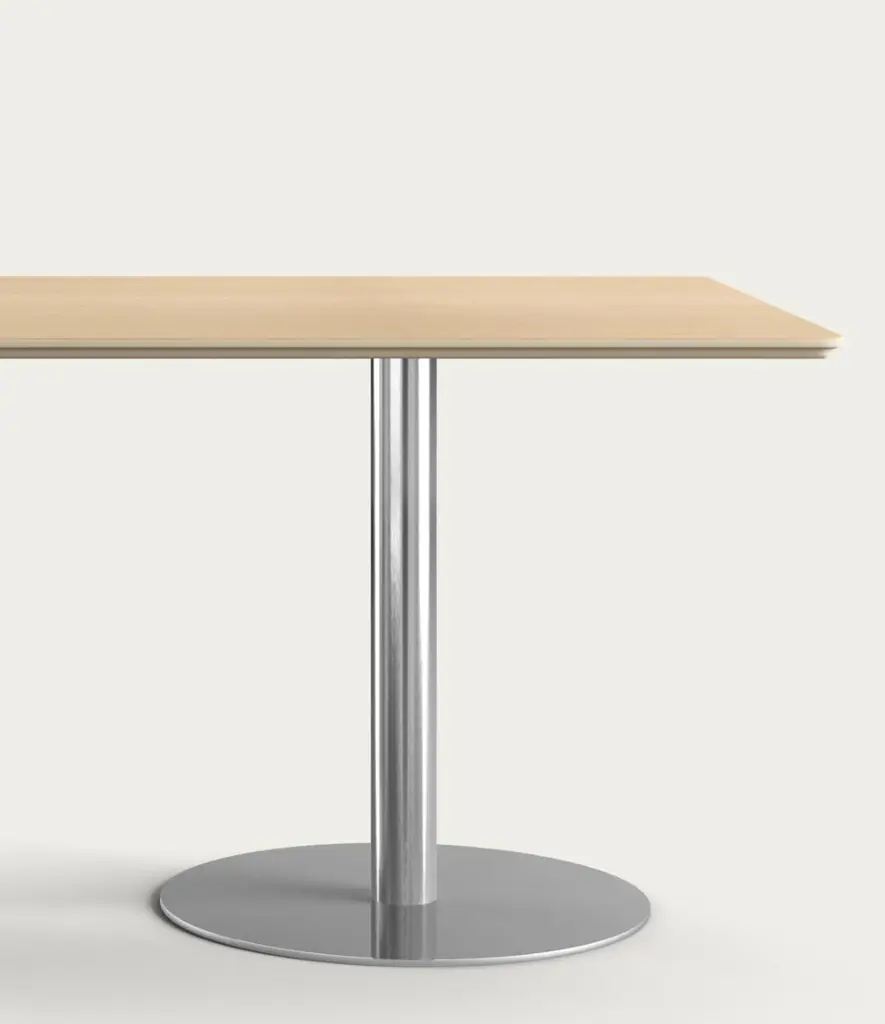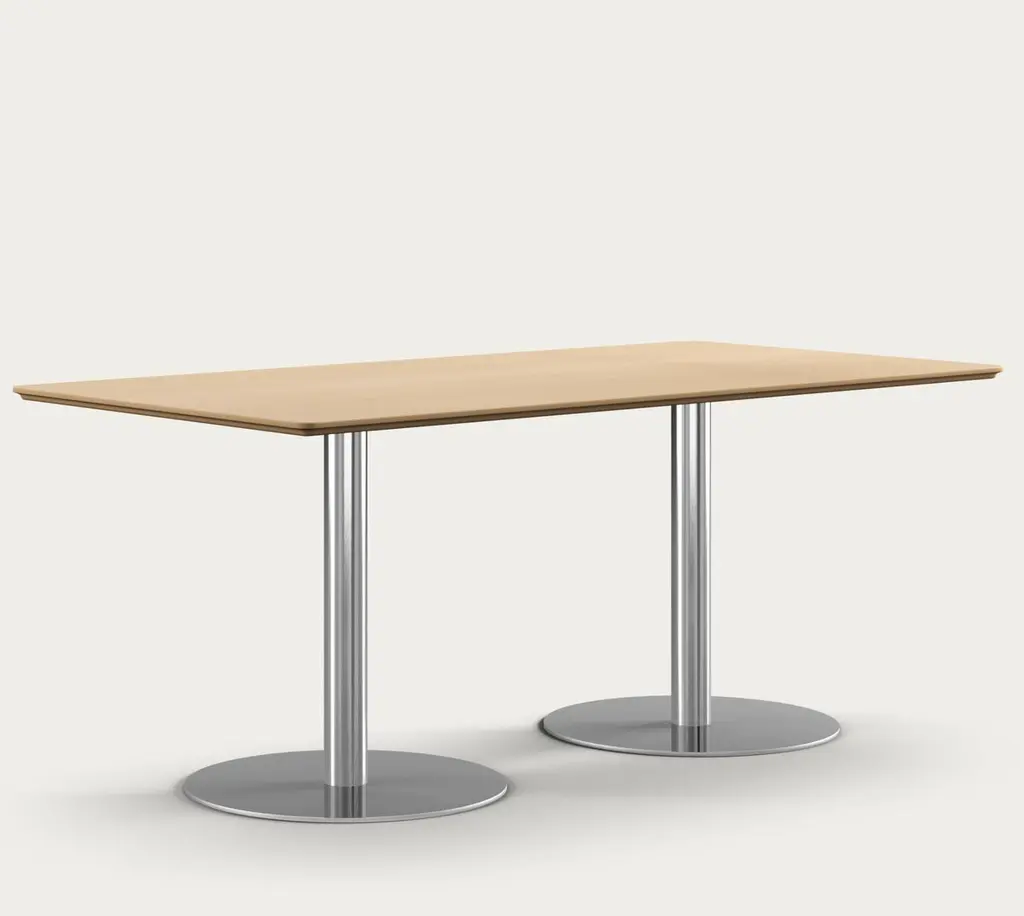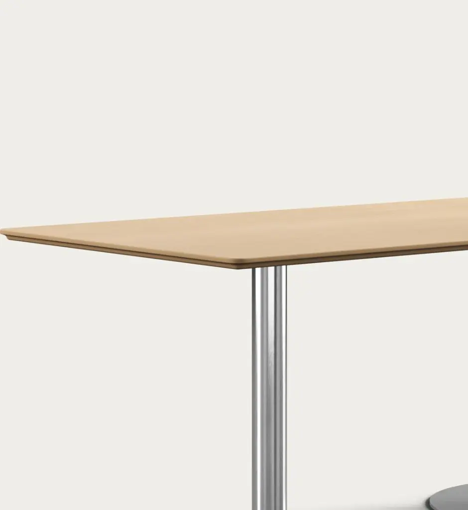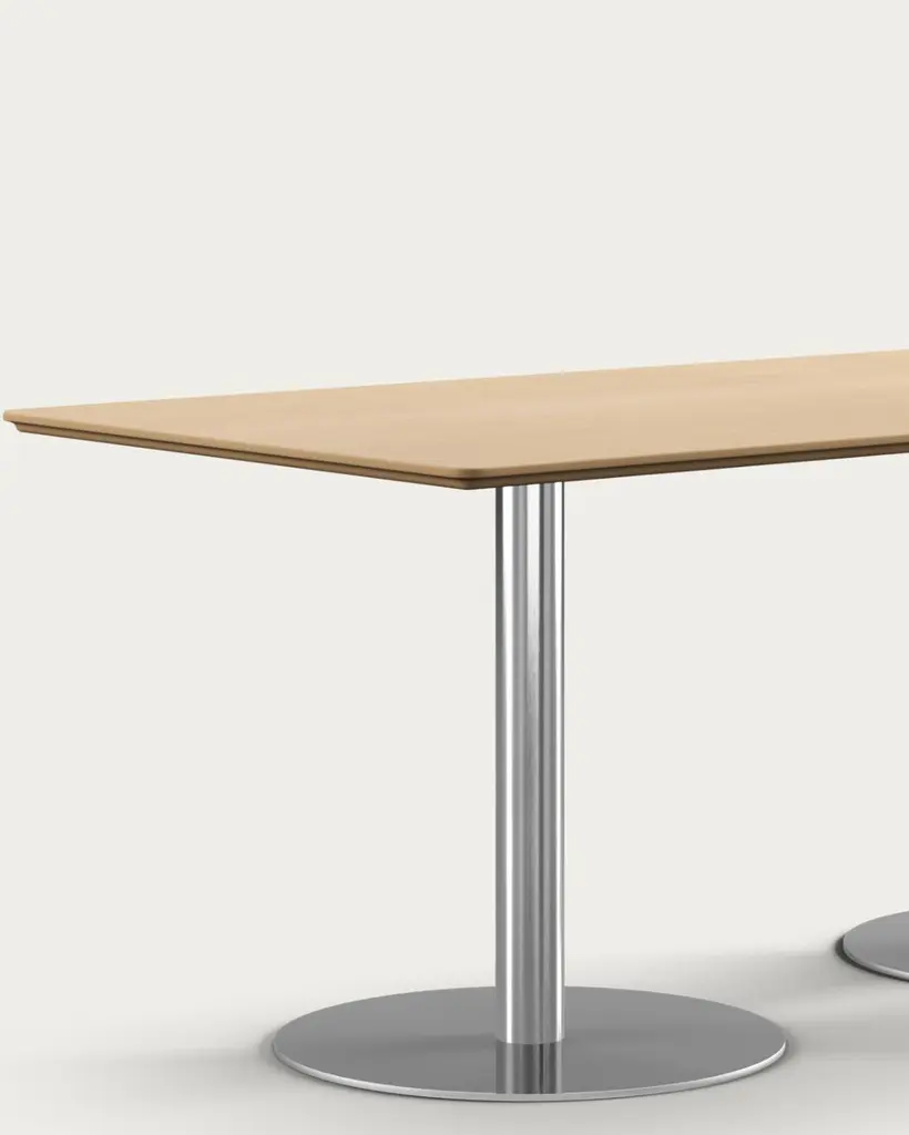 Henrik Tengler Train Conference Table Leg: Stainless Steel, Tabletop: Oak Clear Oil For One Collection.As a prominent feature of the Train Table Series, originally created in 2004 by Henrik Tengler, the Train Conference Table is a testament to versatility and multifunctionality. Designed to cater to the unique demands of conference rooms, meeting areas, and collaborative spaces, this conference table version combines aesthetic elegance with practical functionality.The tabletop offers a variety of choices, including linoleum, laminate, and veneers in rich materials such as teak, oak, ash, or walnut, accommodating diverse tastes and design requirements. The base of the table is available in either powder-coated steel or brushed stainless steel, allowing for customization to suit the specific decor and ambiance of the conference space.General InfoDesign by: Henrik TenglerYear: 2004Dimensions:Tabletop: HT911580 cm x 150 cmPedestal Foot: HT 9667SSØ: 50 cm x H: 71 cmTabletop: HT 921890 cm x 180 cmPedestal Foot: HT 9667SSØ: 60 cm x H: 71 cmTabletop: HT 9201110 cm x 220 cmPedestal Foot: HT 9664SSØ: 70 cm x H: 71 cmDifferent tabletops and pedestals can be combined in almost endless ways. All elements are listed individually in the product sheet.SpecificationsModel and materials:Tabletop: Linoleum, laminate, or veneers in teak, oak, ash, or walnut.Pedestal Foot: Powder-coated steel or brushed stainless steel.The Train Series reflects Henrik Tengler’s meticulous attention to detail, drawing inspiration from Finn Juhl’s design ethos as exemplified by his famous Silver Table. Tengler’s focus on subtle yet significant features, such as the edge profiles and the gentle corners, infuses the table with an understated elegance. The Train Conference Table is characterized by its exquisite organic edge profile, giving it soft corners and edges that enhance its visual appeal, making it a sophisticated addition to any professional setting.Important information regarding images of products:Please note that some of the images show other colors and variations of the model, these images are only to present interior design proposals. The item that is selling is on the first image.Important information regarding color(s) of products:Actual colors may vary. This is due to the fact that every computer monitor, laptop, tablet and phone screen has a different capability to display colors and that everyone sees these colors differently. We try to edit our photos to show all of our products as life-like as possible, but please understand the actual color may vary slightly from your monitor.About Designer: Henrik Tengler graduated from The Royal Danish Academy of Fine Arts in 1988 and has more than 26 years of experience with furniture design and interior design. In 1992 Onecollection put the first chair from Henrik Tengler into production. The chair named Chairman later on became Onecollection’s best selling piece of furniture with more than 50.000 sold to date.About Henrik TenglerHenrik Tengler has frequently contributed to what characterizes Onecollection’s furniture collection – stylish, yet functional quality designs. Over the years Henrik Tengler has created innovative and timeless solutions, whether it has been furniture or interior projects around the world.Henrik Tengler has also designed the tableseries Train, eZone and the Time Chair which have become classics for modern offices and conference rooms.About Manufacture:From our location in a small spot as far west as you can go in Denmark, we’ve captivated clients worldwide, ensuring they believe in our projects. While our journey encountered its share of challenges, our unwavering passion and enthusiasm have continuously persuaded stakeholders, including initially skeptical banks, to support us. This perpetual commitment and belief in OneCollection are why our presence continues to thrive today.Established by Ivan Hansen and Hans Henrik Sørensen in 1990, the main ownership remains with the two founders who guide a team passionately dedicated to the values and mission of the company.From the very beginning, our journey has been self-propelled, building a reputable furniture business grounded in core principles such as passion, quality, collaboration, trust, and humour. Our depth of knowledge in the furniture industry and exceptional Danish furniture design has been pivotal, coupled with a perpetual desire to work autonomously, ensuring freedom and responsibility in our decision-making processes.Driven by a perpetual ambition to elevate OneCollection as one of Denmark’s paramount design companies, we have always strived for excellence in crafting culturally significant, high-standard furniture designs. Our path has often strayed from the conventional, embracing a unique and sometimes unacademic approach, fueling our journey through intuition and courage to stand alone when necessary.Envisioning our future, we stand firmly as a free and independent company, opting for organic growth that is firmly rooted in our values.