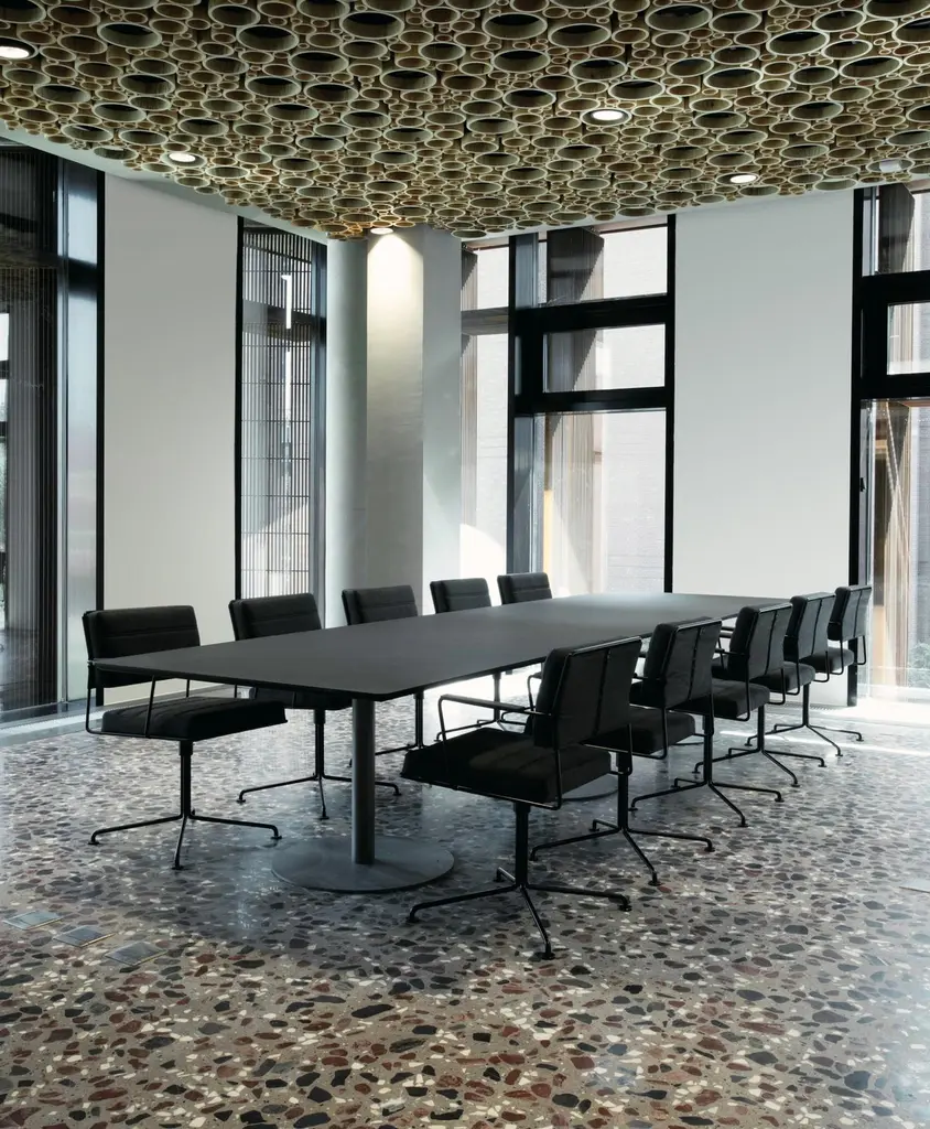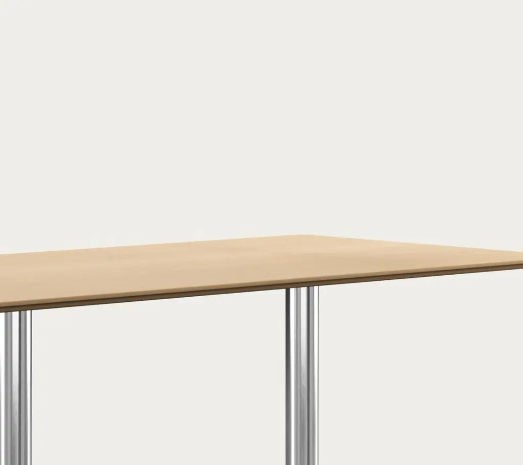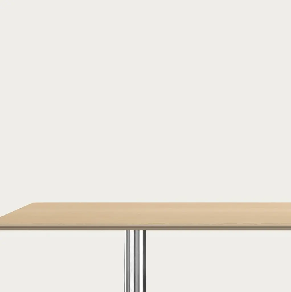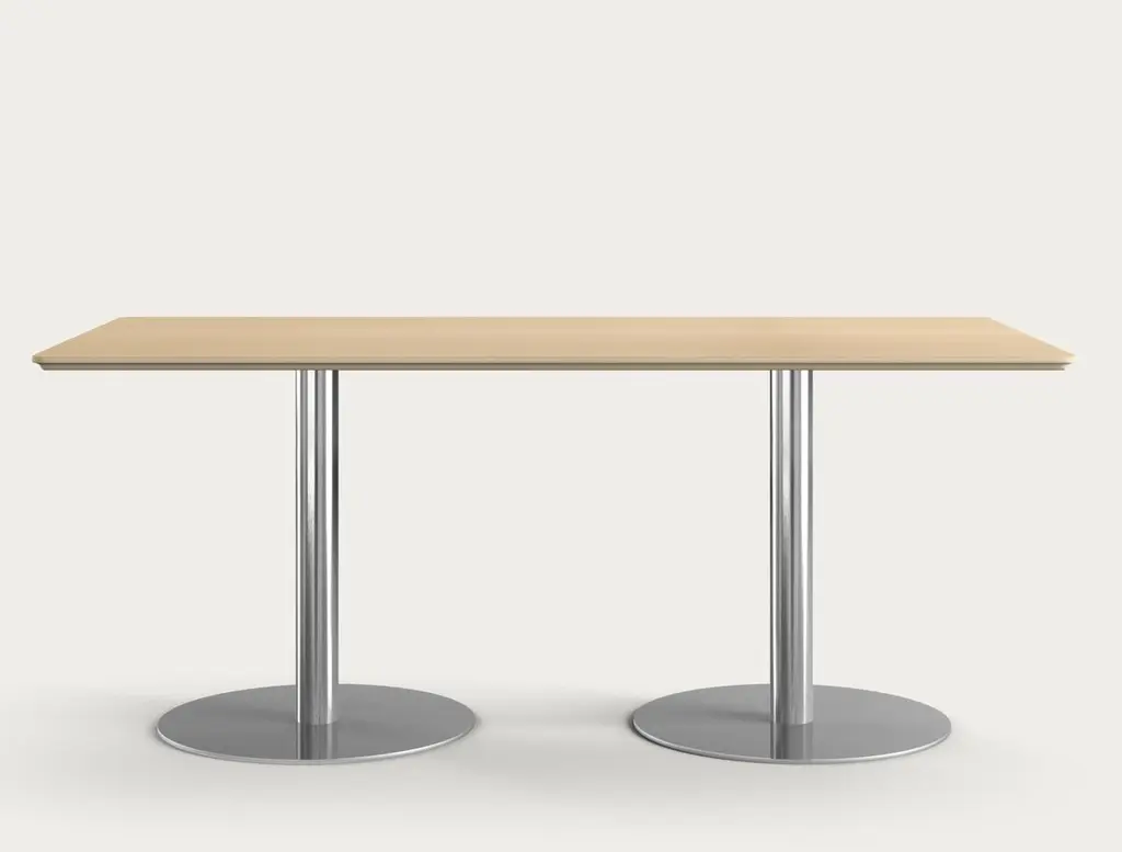 Henrik Tengler Train Conference Table Leg: Stainless Steel, Tabletop: Oak Clear Oil For One Collection.As a prominent feature of the Train Table Series, originally created in 2004 by Henrik Tengler, the Train Conference Table is a testament to versatility and multifunctionality. Designed to cater to the unique demands of conference rooms, meeting areas, and collaborative spaces, this conference table version combines aesthetic elegance with practical functionality.The tabletop offers a variety of choices, including linoleum, laminate, and veneers in rich materials such as teak, oak, ash, or walnut, accommodating diverse tastes and design requirements. The base of the table is available in either powder-coated steel or brushed stainless steel, allowing for customization to suit the specific decor and ambiance of the conference space.General InfoDesign by: Henrik TenglerYear: 2004Dimensions:Tabletop: HT911580 cm x 150 cmPedestal Foot: HT 9667SSØ: 50 cm x H: 71 cmTabletop: HT 921890 cm x 180 cmPedestal Foot: HT 9667SSØ: 60 cm x H: 71 cmTabletop: HT 9201110 cm x 220 cmPedestal Foot: HT 9664SSØ: 70 cm x H: 71 cmDifferent tabletops and pedestals can be combined in almost endless ways. All elements are listed individually in the product sheet.SpecificationsModel and materials:Tabletop: Linoleum, laminate, or veneers in teak, oak, ash, or walnut.Pedestal Foot: Powder-coated steel or brushed stainless steel.The Train Series reflects Henrik Tengler’s meticulous attention to detail, drawing inspiration from Finn Juhl’s design ethos as exemplified by his famous Silver Table. Tengler’s focus on subtle yet significant features, such as the edge profiles and the gentle corners, infuses the table with an understated elegance. The Train Conference Table is characterized by its exquisite organic edge profile, giving it soft corners and edges that enhance its visual appeal, making it a sophisticated addition to any professional setting.Important information regarding images of products:Please note that some of the images show other colors and variations of the model, these images are only to present interior design proposals. The item that is selling is on the first image.Important information regarding color(s) of products:Actual colors may vary. This is due to the fact that every computer monitor, laptop, tablet and phone screen has a different capability to display colors and that everyone sees these colors differently. We try to edit our photos to show all of our products as life-like as possible, but please understand the actual color may vary slightly from your monitor.About Designer: Henrik Tengler graduated from The Royal Danish Academy of Fine Arts in 1988 and has more than 26 years of experience with furniture design and interior design. In 1992 Onecollection put the first chair from Henrik Tengler into production. The chair named Chairman later on became Onecollection’s best selling piece of furniture with more than 50.000 sold to date.About Henrik TenglerHenrik Tengler has frequently contributed to what characterizes Onecollection’s furniture collection – stylish, yet functional quality designs. Over the years Henrik Tengler has created innovative and timeless solutions, whether it has been furniture or interior projects around the world.Henrik Tengler has also designed the tableseries Train, eZone and the Time Chair which have become classics for modern offices and conference rooms.About Manufacture:From our location in a small spot as far west as you can go in Denmark, we’ve captivated clients worldwide, ensuring they believe in our projects. While our journey encountered its share of challenges, our unwavering passion and enthusiasm have continuously persuaded stakeholders, including initially skeptical banks, to support us. This perpetual commitment and belief in OneCollection are why our presence continues to thrive today.Established by Ivan Hansen and Hans Henrik Sørensen in 1990, the main ownership remains with the two founders who guide a team passionately dedicated to the values and mission of the company.From the very beginning, our journey has been self-propelled, building a reputable furniture business grounded in core principles such as passion, quality, collaboration, trust, and humour. Our depth of knowledge in the furniture industry and exceptional Danish furniture design has been pivotal, coupled with a perpetual desire to work autonomously, ensuring freedom and responsibility in our decision-making processes.Driven by a perpetual ambition to elevate OneCollection as one of Denmark’s paramount design companies, we have always strived for excellence in crafting culturally significant, high-standard furniture designs. Our path has often strayed from the conventional, embracing a unique and sometimes unacademic approach, fueling our journey through intuition and courage to stand alone when necessary.Envisioning our future, we stand firmly as a free and independent company, opting for organic growth that is firmly rooted in our values.