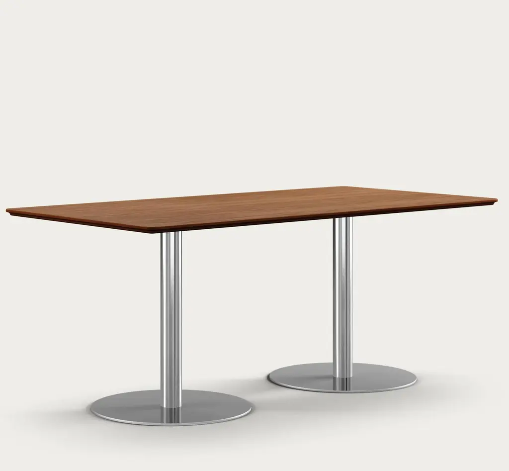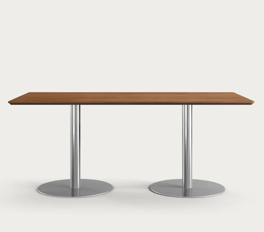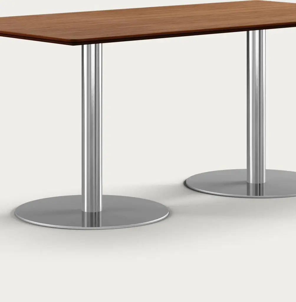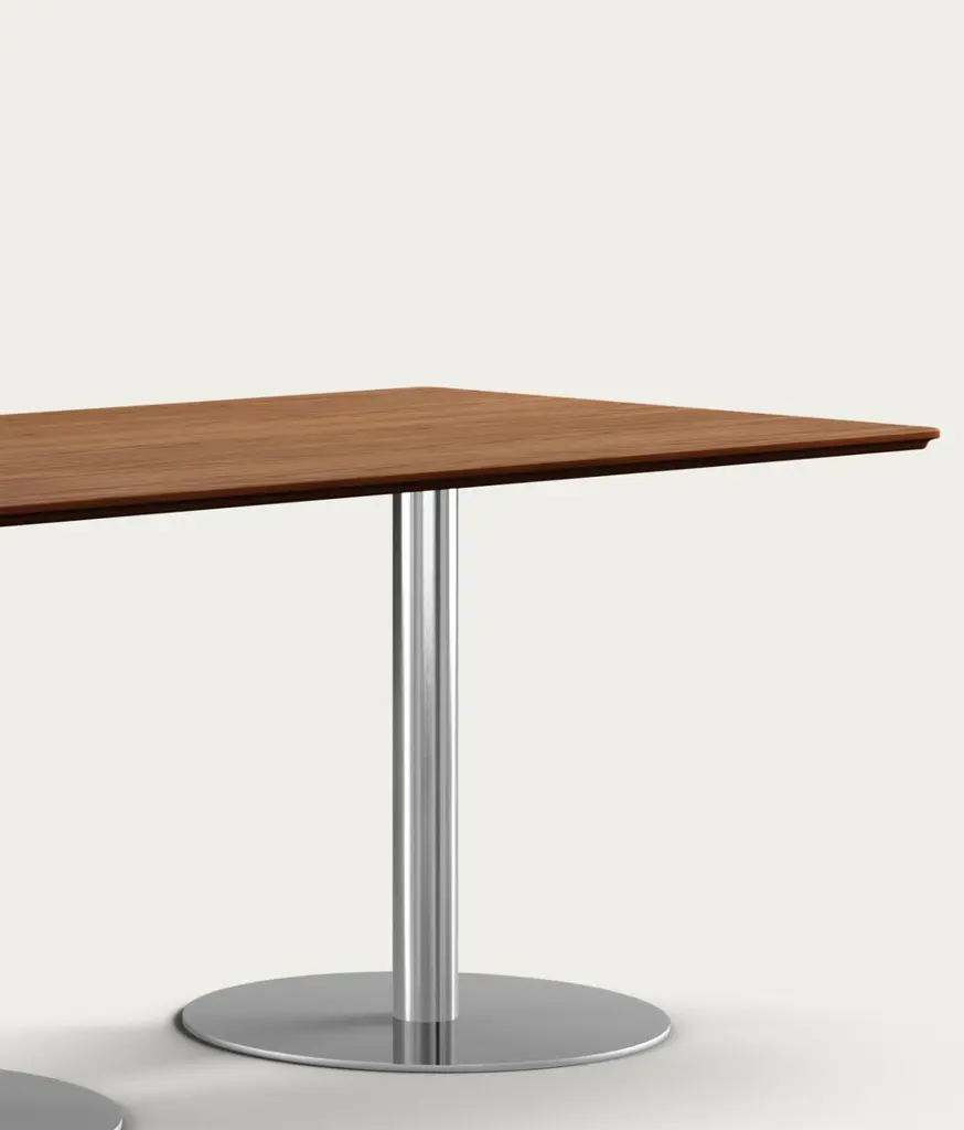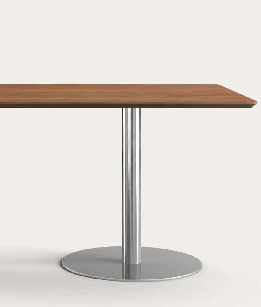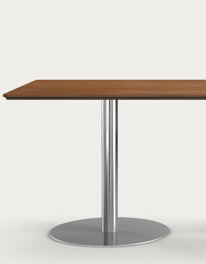 Henrik Tengler Train Conference Table Leg: Stainless Steel, Tabletop: Walnut For One Collection.As a prominent feature of the Train Table Series, originally created in 2004 by Henrik Tengler, the Train Conference Table is a testament to versatility and multifunctionality. Designed to cater to the unique demands of conference rooms, meeting areas, and collaborative spaces, this conference table version combines aesthetic elegance with practical functionality.The tabletop offers a variety of choices, including linoleum, laminate, and veneers in rich materials such as teak, oak, ash, or walnut, accommodating diverse tastes and design requirements. The base of the table is available in either powder-coated steel or brushed stainless steel, allowing for customization to suit the specific decor and ambiance of the conference space.General InfoDesign by: Henrik TenglerYear: 2004Dimensions:Tabletop: HT911580 cm x 150 cmPedestal Foot: HT 9667SSØ: 50 cm x H: 71 cmTabletop: HT 921890 cm x 180 cmPedestal Foot: HT 9667SSØ: 60 cm x H: 71 cmTabletop: HT 9201110 cm x 220 cmPedestal Foot: HT 9664SSØ: 70 cm x H: 71 cmDifferent tabletops and pedestals can be combined in almost endless ways. All elements are listed individually in the product sheet.SpecificationsModel and materials:Tabletop: Linoleum, laminate, or veneers in teak, oak, ash, or walnut.Pedestal Foot: Powder-coated steel or brushed stainless steel.The Train Series reflects Henrik Tengler’s meticulous attention to detail, drawing inspiration from Finn Juhl’s design ethos as exemplified by his famous Silver Table. Tengler’s focus on subtle yet significant features, such as the edge profiles and the gentle corners, infuses the table with an understated elegance. The Train Conference Table is characterized by its exquisite organic edge profile, giving it soft corners and edges that enhance its visual appeal, making it a sophisticated addition to any professional setting.Important information regarding images of products:Please note that some of the images show other colors and variations of the model, these images are only to present interior design proposals. The item that is selling is on the first image.Important information regarding color(s) of products:Actual colors may vary. This is due to the fact that every computer monitor, laptop, tablet and phone screen has a different capability to display colors and that everyone sees these colors differently. We try to edit our photos to show all of our products as life-like as possible, but please understand the actual color may vary slightly from your monitor.About Designer: Henrik Tengler graduated from The Royal Danish Academy of Fine Arts in 1988 and has more than 26 years of experience with furniture design and interior design. In 1992 Onecollection put the first chair from Henrik Tengler into production. The chair named Chairman later on became Onecollection’s best selling piece of furniture with more than 50.000 sold to date.About Henrik TenglerHenrik Tengler has frequently contributed to what characterizes Onecollection’s furniture collection – stylish, yet functional quality designs. Over the years Henrik Tengler has created innovative and timeless solutions, whether it has been furniture or interior projects around the world.Henrik Tengler has also designed the tableseries Train, eZone and the Time Chair which have become classics for modern offices and conference rooms.About Manufacture:From our location in a small spot as far west as you can go in Denmark, we’ve captivated clients worldwide, ensuring they believe in our projects. While our journey encountered its share of challenges, our unwavering passion and enthusiasm have continuously persuaded stakeholders, including initially skeptical banks, to support us. This perpetual commitment and belief in OneCollection are why our presence continues to thrive today.Established by Ivan Hansen and Hans Henrik Sørensen in 1990, the main ownership remains with the two founders who guide a team passionately dedicated to the values and mission of the company.From the very beginning, our journey has been self-propelled, building a reputable furniture business grounded in core principles such as passion, quality, collaboration, trust, and humour. Our depth of knowledge in the furniture industry and exceptional Danish furniture design has been pivotal, coupled with a perpetual desire to work autonomously, ensuring freedom and responsibility in our decision-making processes.Driven by a perpetual ambition to elevate OneCollection as one of Denmark’s paramount design companies, we have always strived for excellence in crafting culturally significant, high-standard furniture designs. Our path has often strayed from the conventional, embracing a unique and sometimes unacademic approach, fueling our journey through intuition and courage to stand alone when necessary.Envisioning our future, we stand firmly as a free and independent company, opting for organic growth that is firmly rooted in our values.