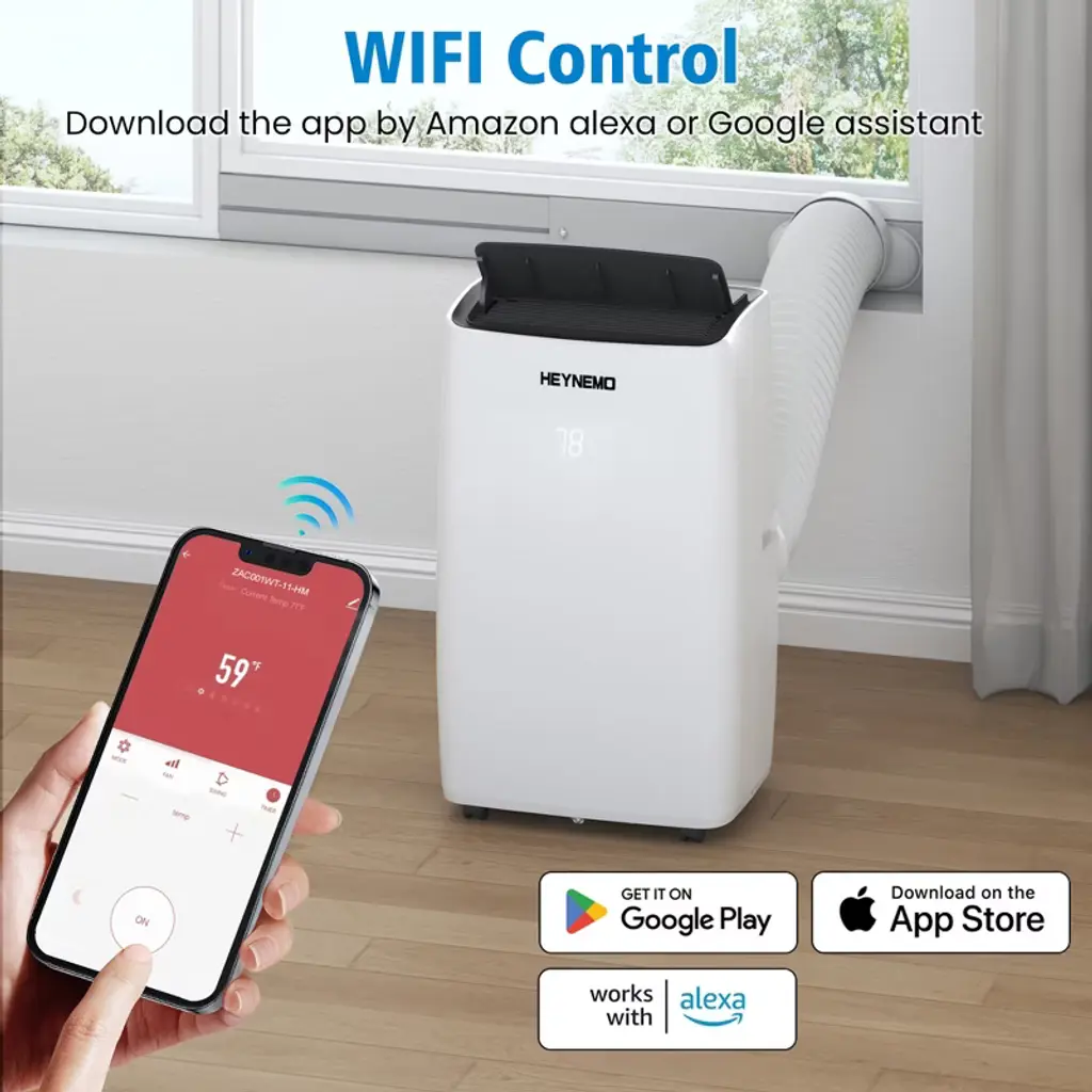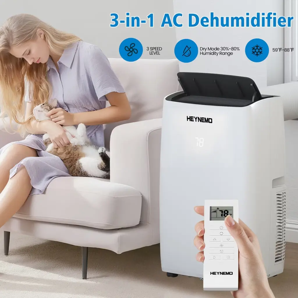 Heynemo 14,000 Btu 3-in-1 Portable Air Conditioner With Heat, Dehumidifier & Fan, Smart Wifi Control, Quiet Ac For Bedroom, Office, White