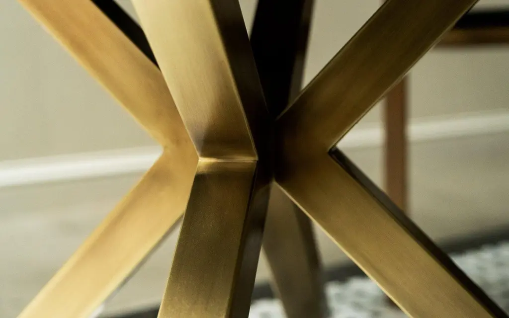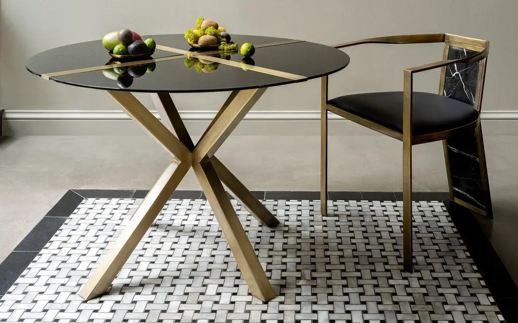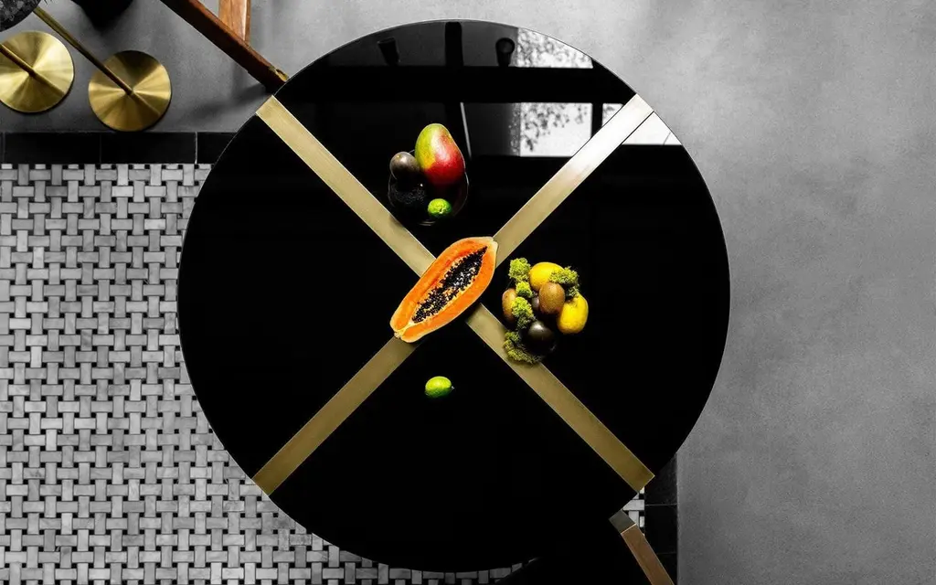 The HIDDEN series stands out for its variety of materials and geometric forms, and has established itself in the upper segment of the design world with its nostalgic design concept and meticulous craftsmanship. The collection, which features dark tones, manages to enchant with its elegance regardless of product size. The HIDDEN ROUND TABLE presents a combination of black and brass lines.Diameter: 110 cm / 43.3 inchHeight: 72 cm / 28.3 inchBlack Painted Glass TopBrass Coated Metal Top DetailBrass Coated Metal Leg