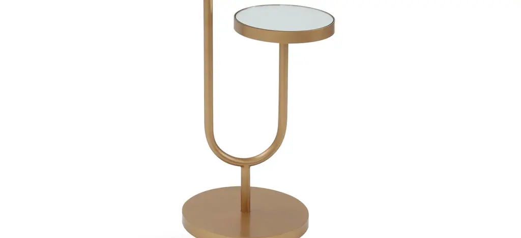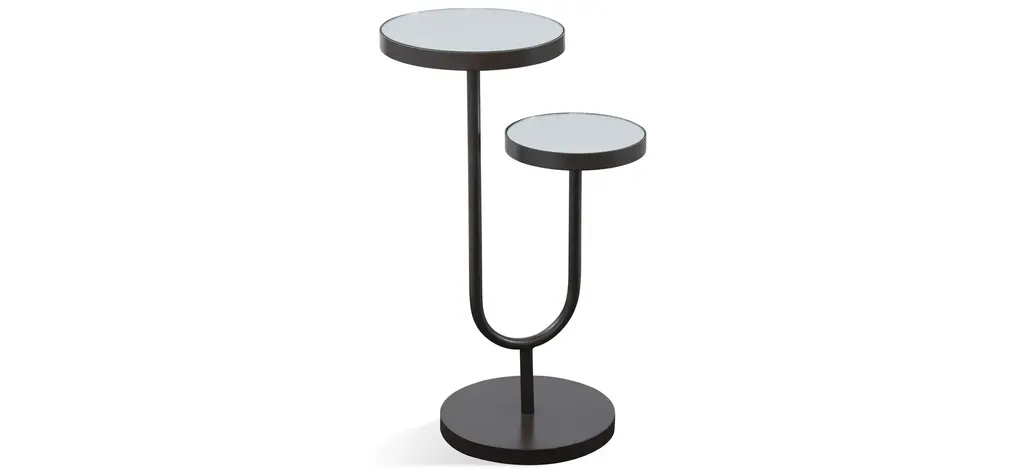 The High-Low Scatter Table boasts modern contemporary styling. The table features two staggered, mirror tabletops that are perfect for holding drinks and snacks. The Gold stand features curved tubed support on a large circular base.