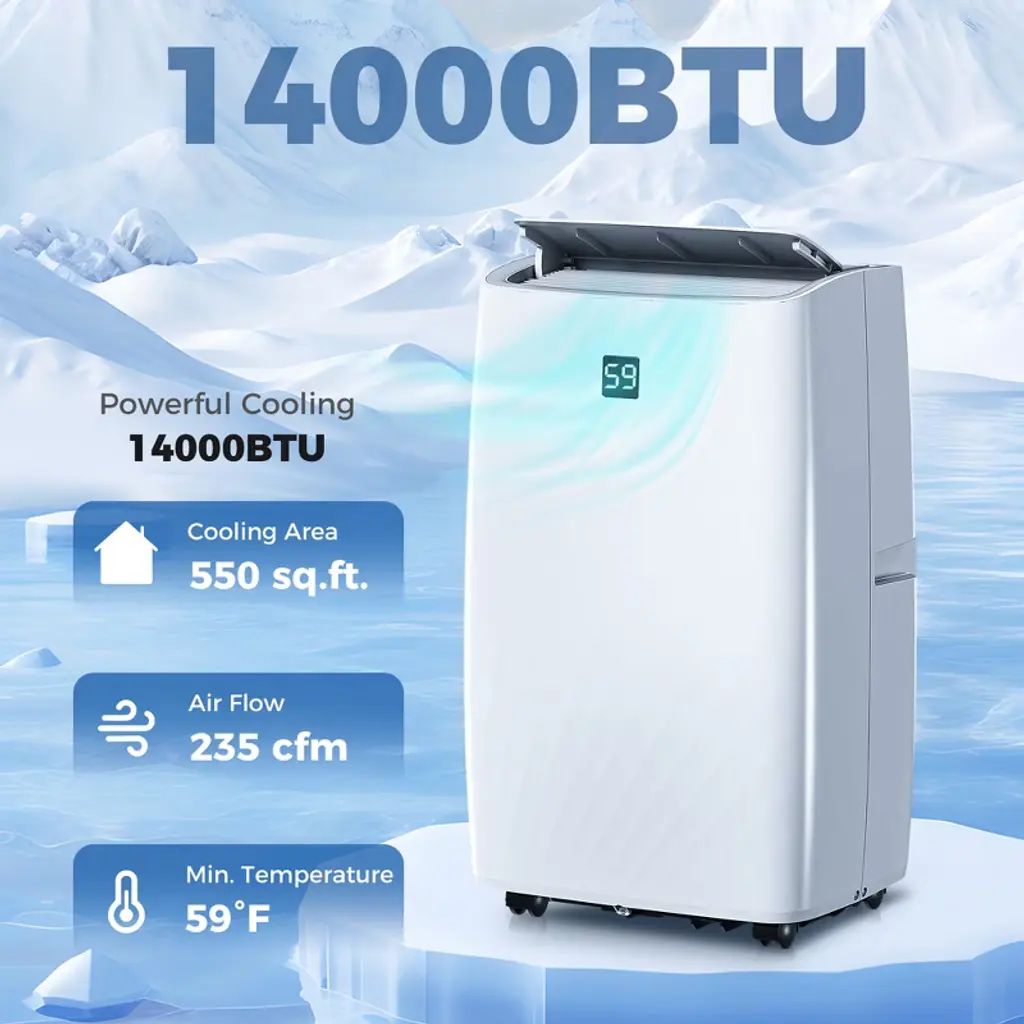 Experience refreshing breezes with the HOMCOM Portable Air Conditioner, a powerhouse with 12,000 BTU cooling for spaces up to 550 sq ft. Enjoy versatile comfort with cooling, dehumidifying, and fan modes. Plus, the auto swing air blades ensure even air distribution, making it an excellent air conditioner for a bedroom or any room. Effortlessly control it all with a touch panel or remote!