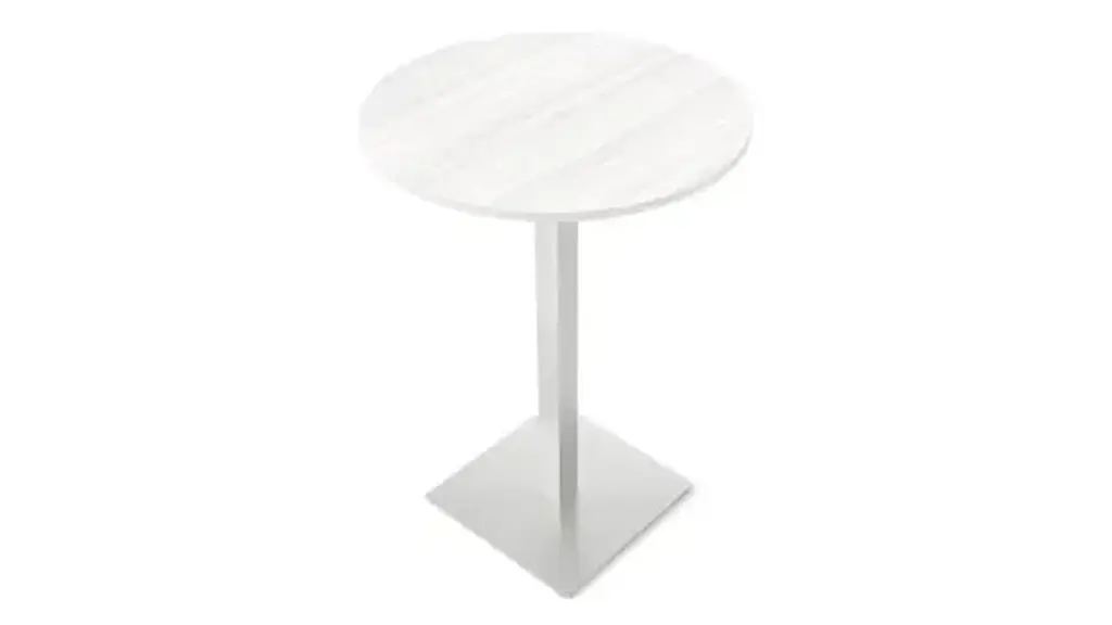 Corp Design 30" Round Top Cafe Height Table features: * Durable round laminate top (30" diameter) * Square brushed stainless steel base * Available in several finishes Overall dimensions are 30"W x 30"D x 42"H. Ships ready for easy assembly.