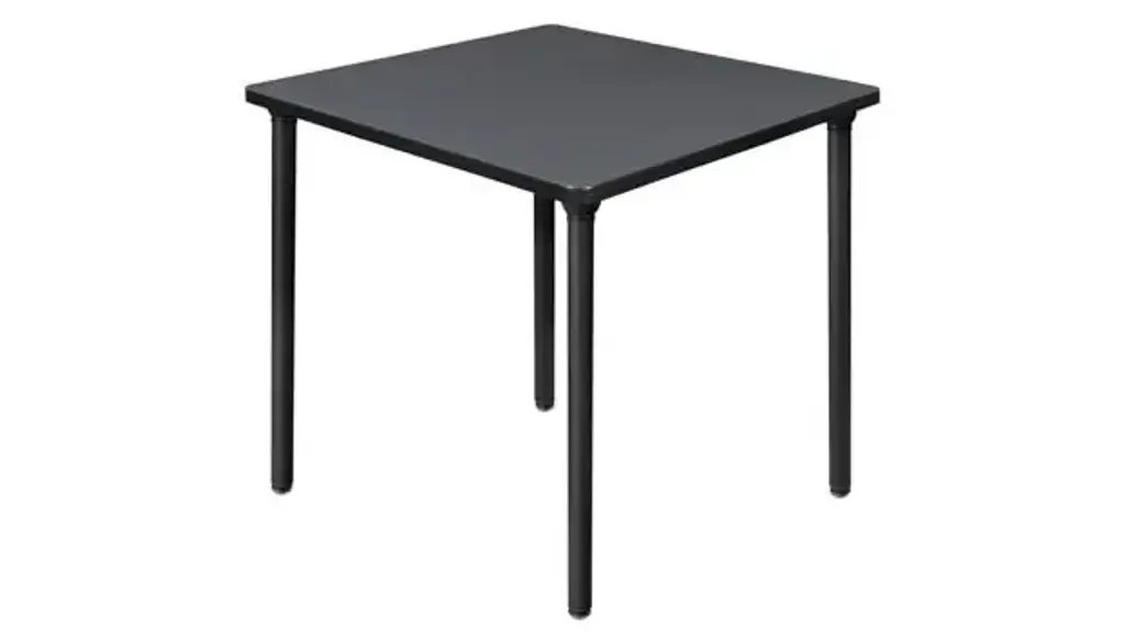 Turn any table into a folding table with Kee Folding Post Legs! Kee Folding post legs come four to a set and can collapse while attached to a tabletop. Simply twist the leg to unlock, fold down and twist in the opposite direction to lock back into place. This 36" square table assembles in a snap with just a few screws. The table is constructed of a thermal fused melamine laminate tabletop that is 1" thick and finished with a black T-Mold edge band. Grey tabletop is double sided and finished in Mahogany on the other side, Noble Oak laminate has Neo Walnut on the other side, Maple laminate has Cherry laminate on the other side. Self tapping wood screws and a placement template are included. Laminates are scratch, stain and scald resistant and wipe clean easily. Rounded corners make the table safer for everyone. A sleek alternative to pedestal style bases, this set of post legs comes in a classic black to match any decor. The legs are constructed of tubular steel with leveling glides on the bottom of each leg. Overall Dimensions: 36" W x 36" D x 29" H. Ships ready for easy assembly.