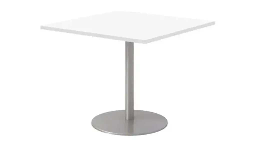 Mode tables are designed for cafés, breakrooms, meeting and conference rooms, collaborative spaces, and a variety of other applications. It has a 1.25" thick high pressure laminate top that's durable and easy to clean. The top has an durable edge that won't crack or peel. The solid cast iron legs have levelling glides to prevent the table from wobbling on uneven floors. The center column base is 3" diameter and is made of 16 gauge steel. Tops hand-made and stained in the USA. Overall Dimensions: 36" W x 36" D x 29" H. Ships ready for easy assembly.