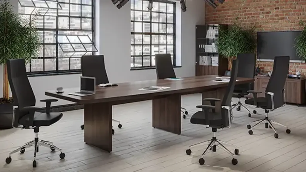 Items are made to order & cannot be cancelled. Introducing the ultimate American-made conference table, the perfect combination of durability, functionality, and style. With a sleek boat shape design, measuring 48"W and 10ft long, it's the ideal choice for any professional setting. Crafted with pride by skilled American artisans, this conference table is made from premium materials, including 1-3/4" thick particleboard and a durable laminate finish, available in a variety of colors to suit your preferences. Featuring extra-wide 1-3/4" square panel legs, this table is built to last and can handle even the most demanding meetings. With its superior craftsmanship, you'll really feel the American quality in every inch of this product. We know that time is of the essence, which is why we strive to produce our tables within 10 business days right here in the USA. And with shipping lead times of just 1-3 weeks, you'll have your conference table in no time. Tables come without grommet holes to give you maximum work surface. These made in the USA tables can custom crafted to include grommet passes for wire management or power units. Contact a representative to learn more about these custom options. Assembly is a breeze, and you'll have your new conference table up and running in no time. So why wait? Invest in American-made quality and elevate your workspace with this exceptional conference table today! Table has a 2 piece top.