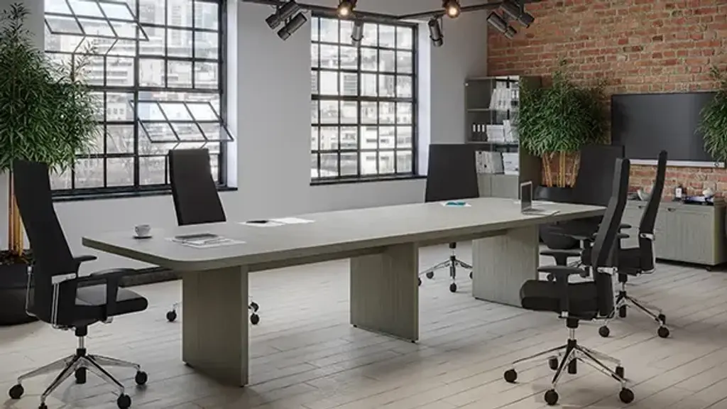 Items are made to order & cannot be cancelled. Introducing the ultimate American-made conference table, the perfect combination of durability, functionality, and style. With a sleek radius corner rectangle design, measuring 42"W and 10ft long, it's the ideal choice for any professional setting. Crafted with pride by skilled American artisans, this conference table is made from premium materials, including 1-3/4" thick particleboard and a durable laminate finish, available in a variety of colors to suit your preferences. Featuring extra-wide 1-3/4" square panel legs, this table is built to last and can handle even the most demanding meetings. With its superior craftsmanship, you'll really feel the American quality in every inch of this product. We know that time is of the essence, which is why we strive to produce our tables within 10 business days right here in the USA. And with shipping lead times of just 1-3 weeks, you'll have your conference table in no time. Tables come without grommet holes to give you maximum work surface. These made in the USA tables can custom crafted to include grommet passes for wire management or power units. Contact a representative to learn more about these custom options. Assembly is a breeze, and you'll have your new conference table up and running in no time. So why wait? Invest in American-made quality and elevate your workspace with this exceptional conference table today! Table has a 2 piece top.