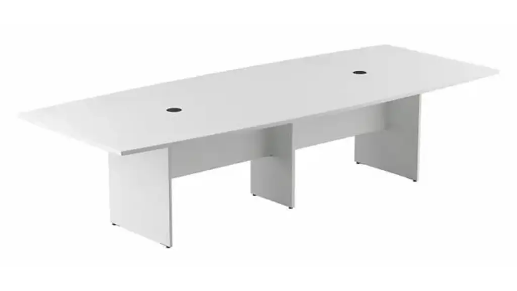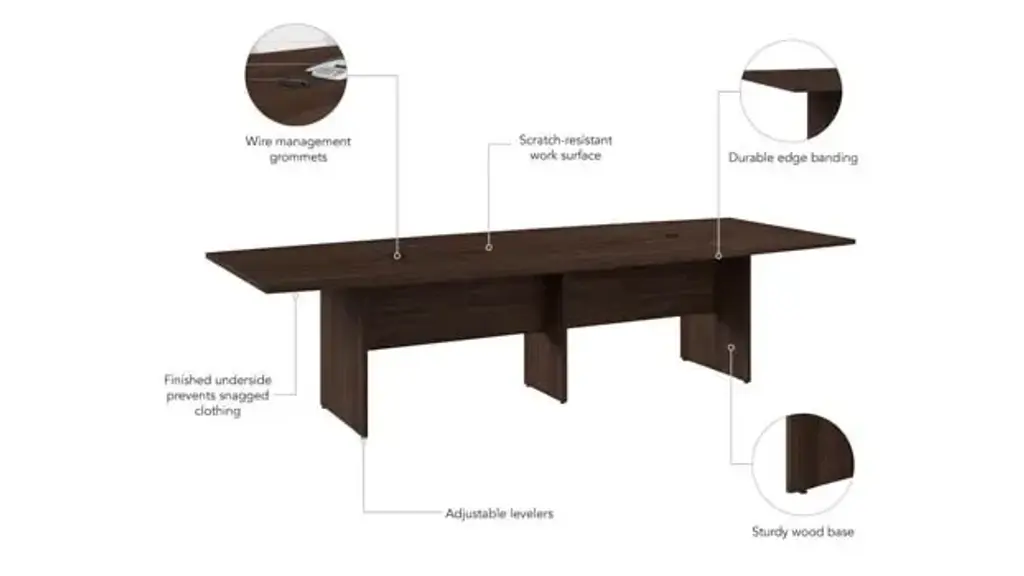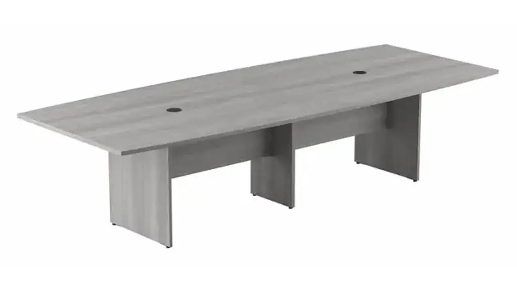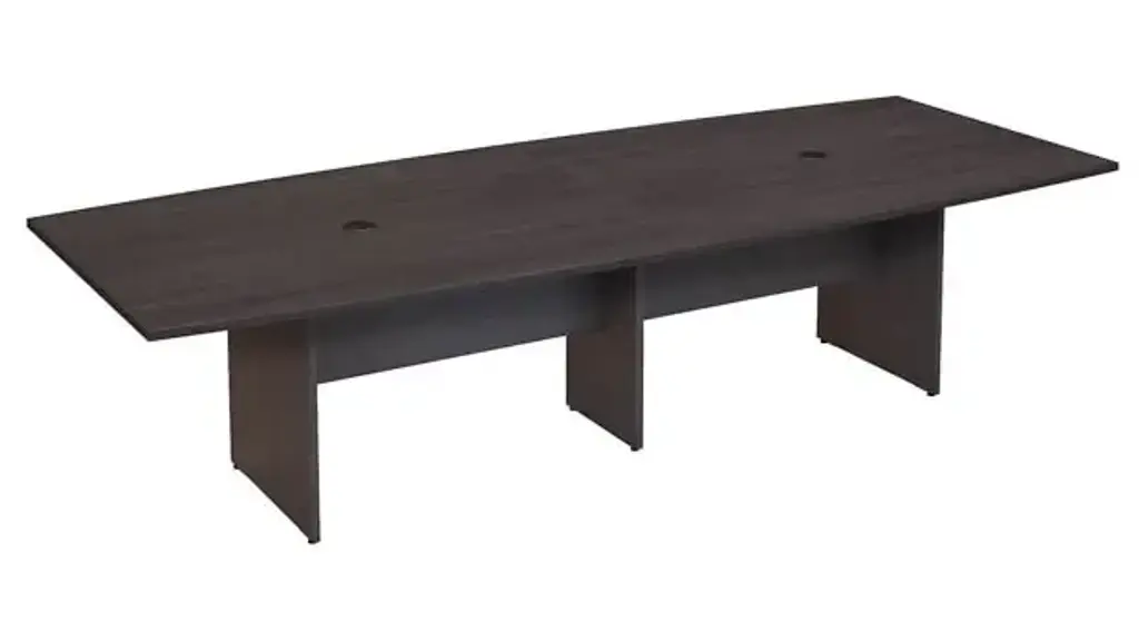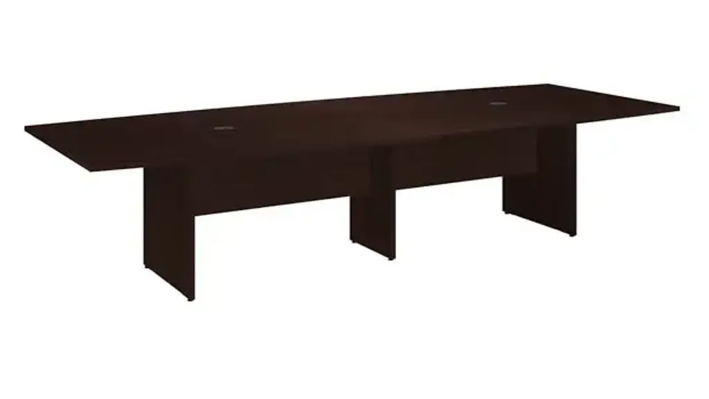Bring your team together in a private or open plan office with the Bush Business Furniture 120" W x 48" D Boat Shaped Conference Table. Perfect for medium to large-sized groups, this meeting table provides ample room for 8-10 users to collaborate with laptops, paperwork and other materials. A durable thermally fused laminate work surface with continuous edge banding protects against scratches, stains, nicks and dings throughout years of daily meetings while a finished underside helps prevent snagged clothing. The tabletop also includes two wire management grommets to accommodate cords and cables from a projector or speaker phone. The large conference room table is supported by a sturdy wooden base for a weight capacity of 200 lbs, making it great for use in a training area or education space in addition to the boardroom. Choose from a variety of contemporary and traditional finish options for a look that suits any environment. This long office table is tested to meet ANSI/BIFMA quality standards for safety and performance. Bush Business Furniture Conference Tables are available in a variety of styles and sizes to complement any professional environment. North American made with globally sourced materials. Overall Dimensions: 119.21"W x 47.52"D x 28.65"H. Ships ready for easy assembly.