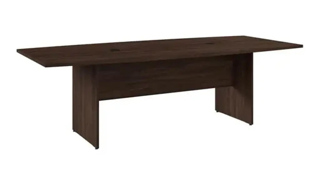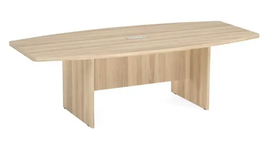 There aren't many things in a conference room that will catch your eye quite like a boat shaped conference table. This boat shaped conference table from the OS Conference Tables collection by OfficeSource is the ideal business furniture for conferences and meetings. Complete with 3 mil PVC Tough Edge, this table also features a durable laminate surface. The dimensions of this boat shaped conference table allow for plenty of documents and files to be used on this table for noting down ideas and other key points during conferences and meetings. With this boat shaped conference table with slab base, you won't even have to worry about connectivity. Since the role of technology in businesses and offices these days cannot be undermined, this table comes with a wire grommet to ensure that you and your colleagues will be able to connect your electrical devices and equipment even while you are in a meeting. This table is also available in three different finishes which allows you to choose the one that best complements your existing decor. Ships ready for easy assembly.