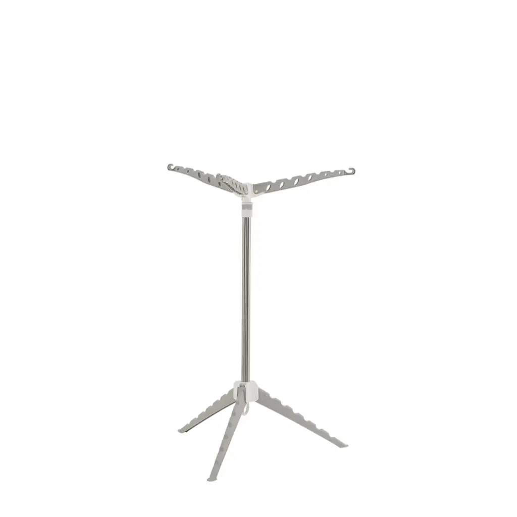 The Collapsible Portable Indoor Tripod Clothes Drying Rack is the perfect environmentally friendly alternative for drying laundry. This thoughtfully designed indoor folding tripod hanging rack is designed to make air drying your clothes a breeze. Crafted with a sturdy steel frame and arms, this rack provides ample strength and stability to hold even the heaviest of items like wet towels and jeans. Its hanger slots can accommodate hanger placement through and atop the provided holes, ensuring your clothes dry wrinkle-free and without any marks. Measuring 64.5 inches H x 26 inches diameter, this drying rack provides ample space for drying a full load of laundry. When not in use, it folds and disassembles easily to store in a closet or small space. Its silver and blue color scheme adds a touch of modern style to your space, while its clever design makes it easy to use and maintain.