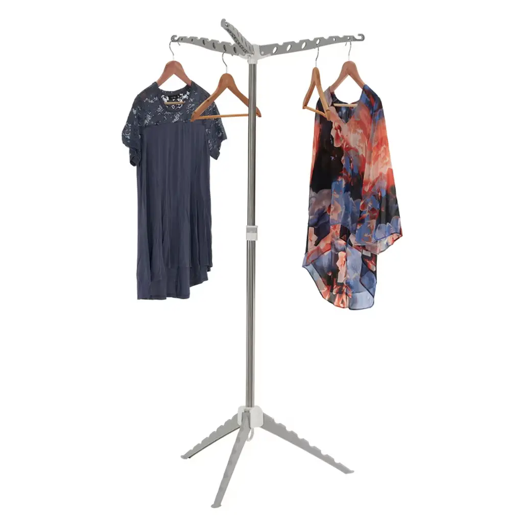 Household Essentials Collapsible Portable Indoor Tripod Clothes Drying Rack For Hanging Laundry, Silver And Blue