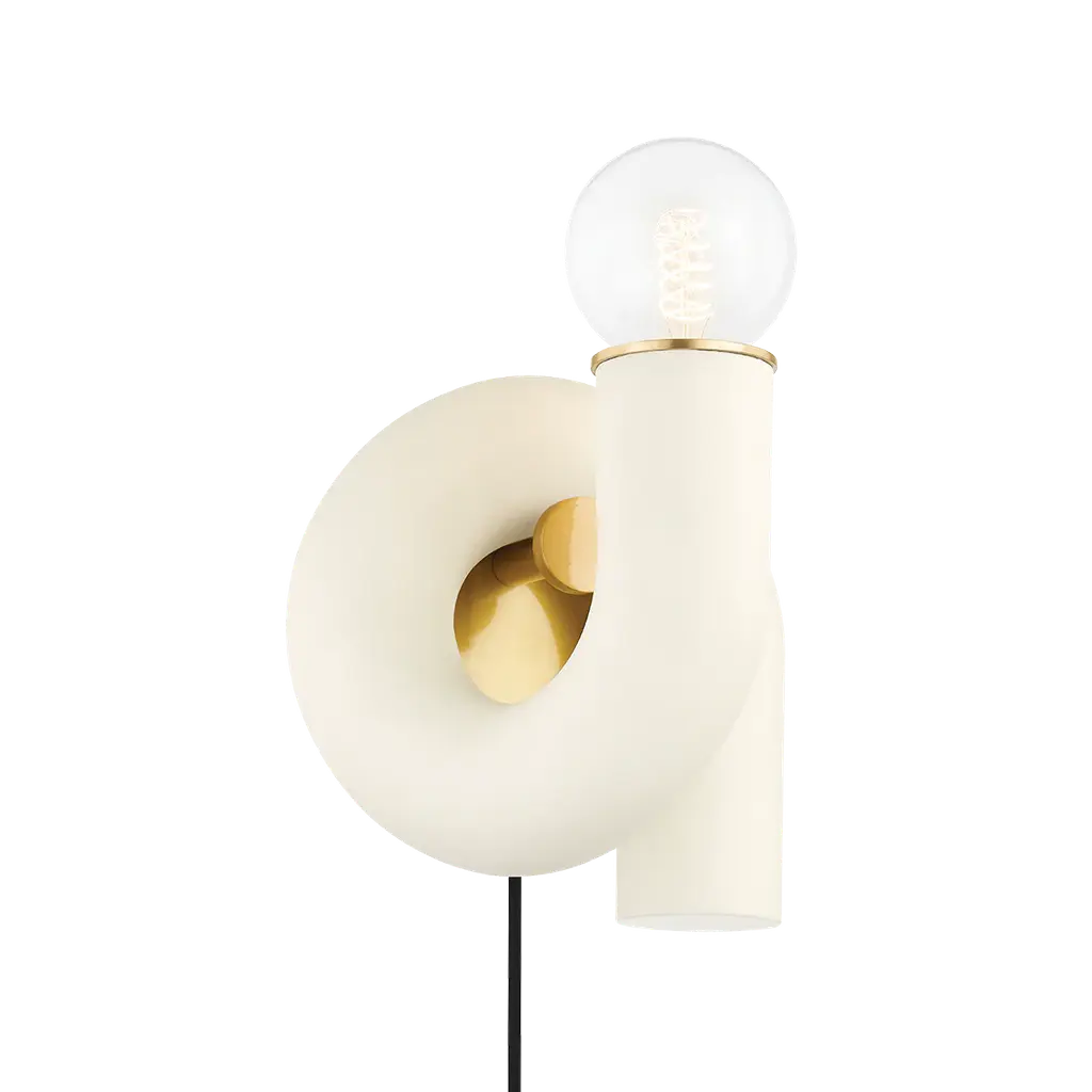 Tory uses negative space to make a positive impact. A circular backplate, square arm and cylindrical socket combine to form a new, unique shape. This plug-in sconce is easy to install, easy on the eyes and hard to ignore. Available in three finishes, Tory complements any dcor.1 Light Portable Wall SconceLocation Rating : UL DRYListing Certifications : ULBody Frame Finish/color : Soft ScreamBody Frame Material : SteelFixture Weight : 1.5 LBsBulb QTY : 1Bulb Wattage : 60Bulb Shape : E26 Medium BaseBase/Module : E26 Medium BaseLamp Type : E26 Medium BaseLamp Inclusion : NoVoltage : 120Installation/Orientation : YesSwitch Type : 8'' SPT cord with On/Off on PlugSwitch Location : 8'' SPT cord with On/Off on PlugADA (Wall) : NoProduct Width : 8.25"Product Height : 11"Extension/Projection : 7.5"