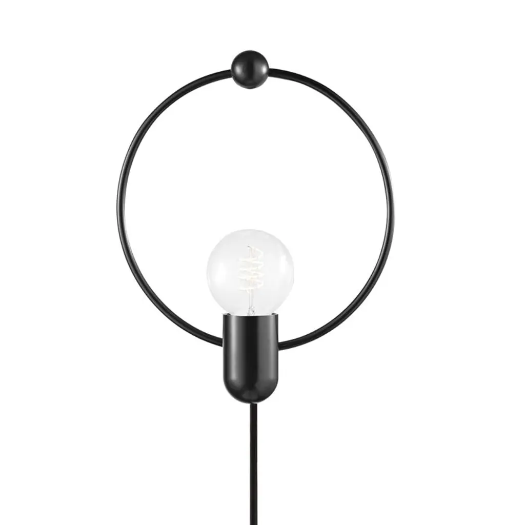 Darcy''s clean lines and polished look are the essence of graphic minimalism. Simple details take this bare bulb plug-in sconce from functional to sophisticated. A ring of aged brass or soft black encircles a single bulb, creating negative space that sparks visual interest. The round sphere at the top of the ring and thoughtfully-designed smooth and sleek socket at the bottom complete the fixture''s fresh look.1 Light Portable Wall SconceLocation Rating : UL DAMPListing Certifications : ULBody Frame Finish/color : Soft BlackBody Frame Material : IronFixture Weight : 2.75 LBsBulb QTY : 1Bulb Wattage : 40Bulb Shape : E26 Medium BaseBase/Module : E26 Medium BaseLamp Type : E26 Medium BaseLamp Inclusion : NoVoltage : 120Installation/Orientation : YesSwitch Type : ON/OFF SWITCH ON CORDSwitch Location : ON/OFF SWITCH ON CORDADA (Wall) : YesProduct Width : 10"Product Height : 12.25"Extension/Projection : 3.5"