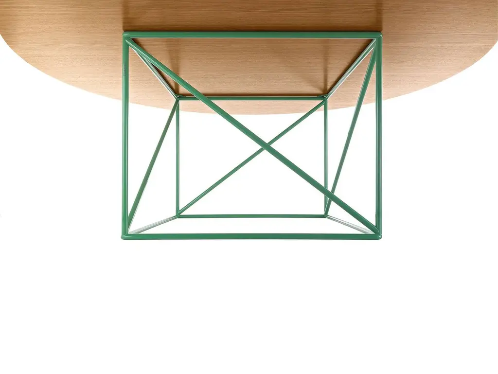 Prices vary dependent on the size and material. The top can be made in natural oak, black stained oak or American walnut. The base is available in black, grey or light green painted metal. Table designed by Le Corbusier. Relaunched in 2010. Manufactured by Cassina in Italy. Organic and yet rational, this table was designed by Le Corbusier in 1958. Its distinctive construction derives from two geometric figures: the circle, in the form of a sturdy oak table-top, sitting on a cube-like base, composed of steel tubes at right angles to each other. This clean-cut dynamic style confers on the future a piece of great value, aesthetically speaking, that makes a perfect partner in the home, or as a conference table, seating up to ten.