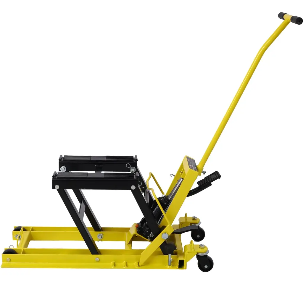 Hydraulic Motorcycle Lift Jack Portable Motorcycle Lift Table With 4 Wheels - 30.80"l * 14.20"w * 28.50"h - Black+yellow