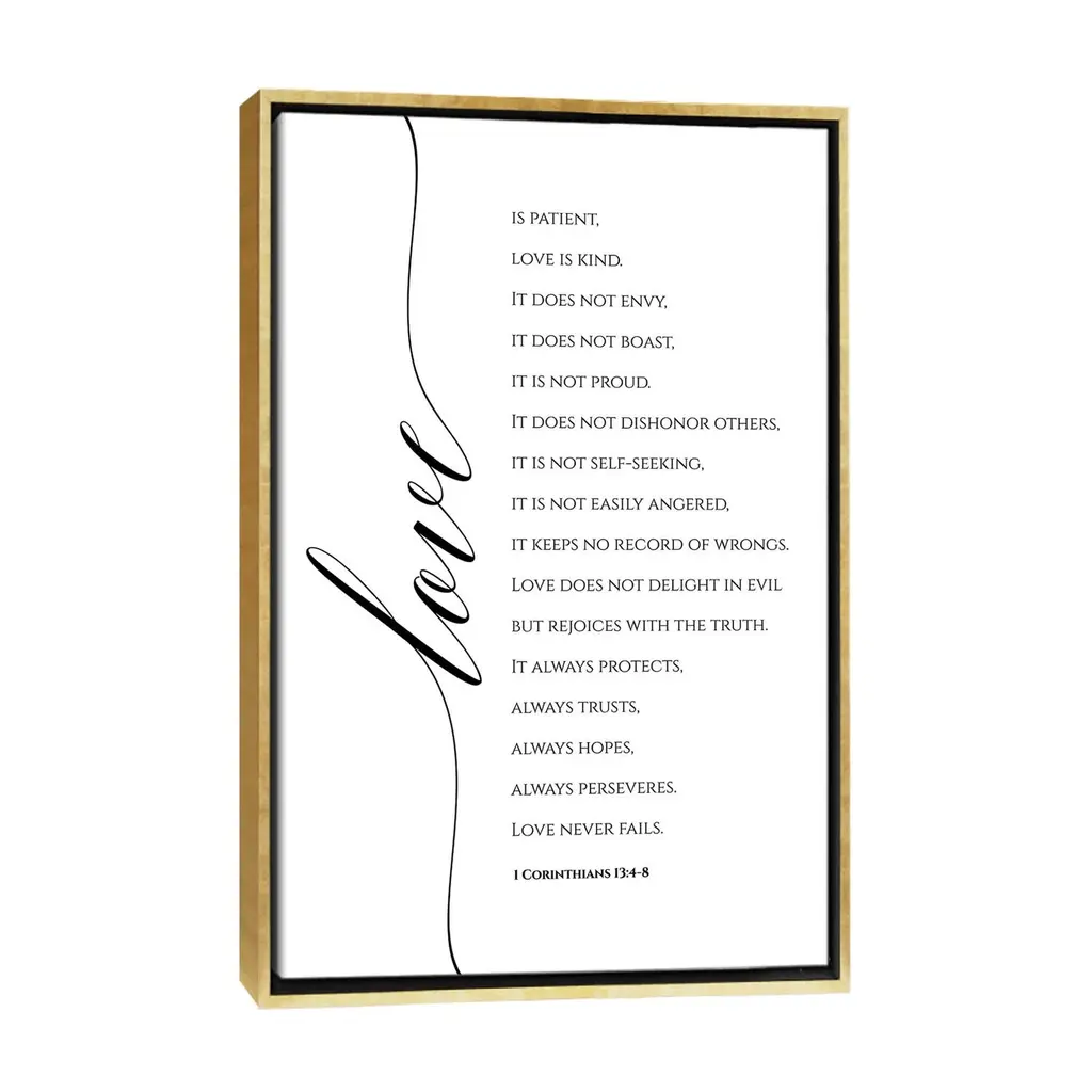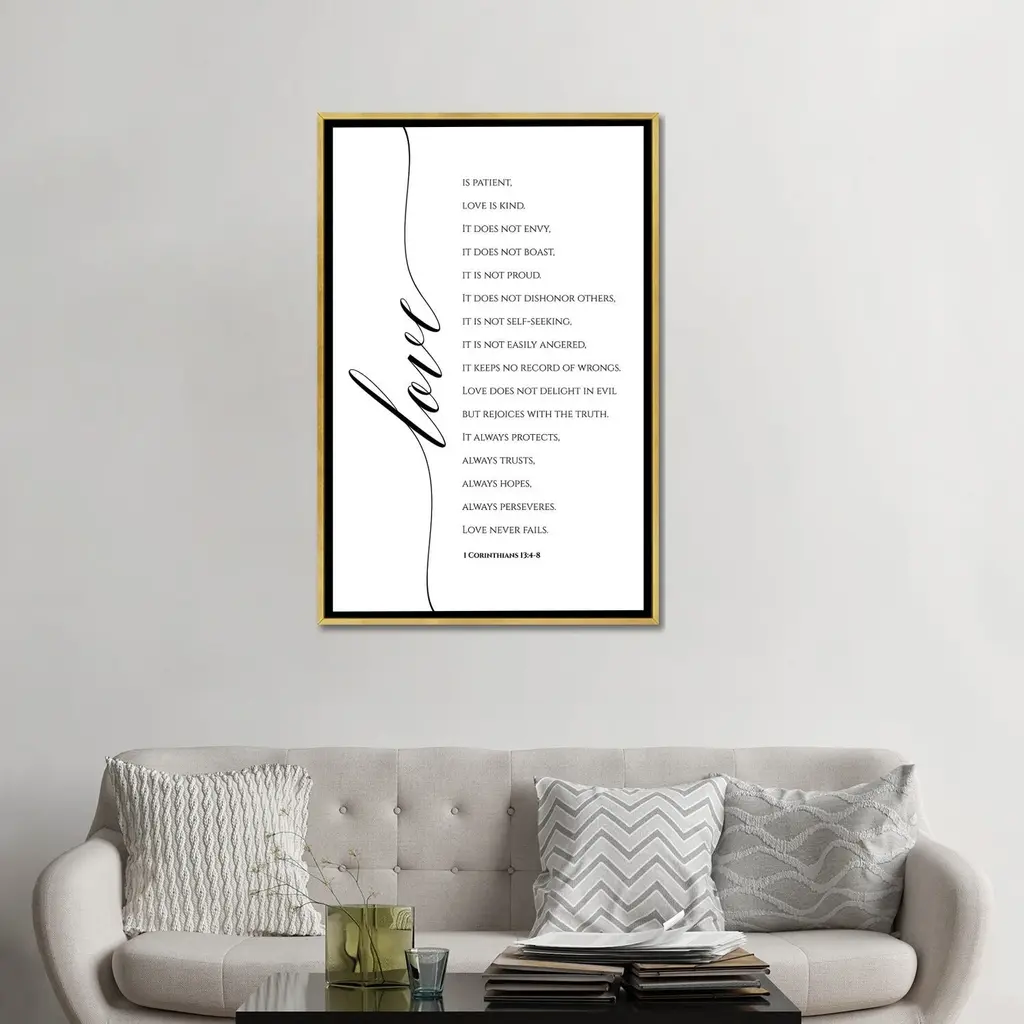 Icanvas "Love Is Patient, Love Is Kind, 1 Corinthians 13-4-8" By Eden Printables Framed Canvas Print - Black - 26x18