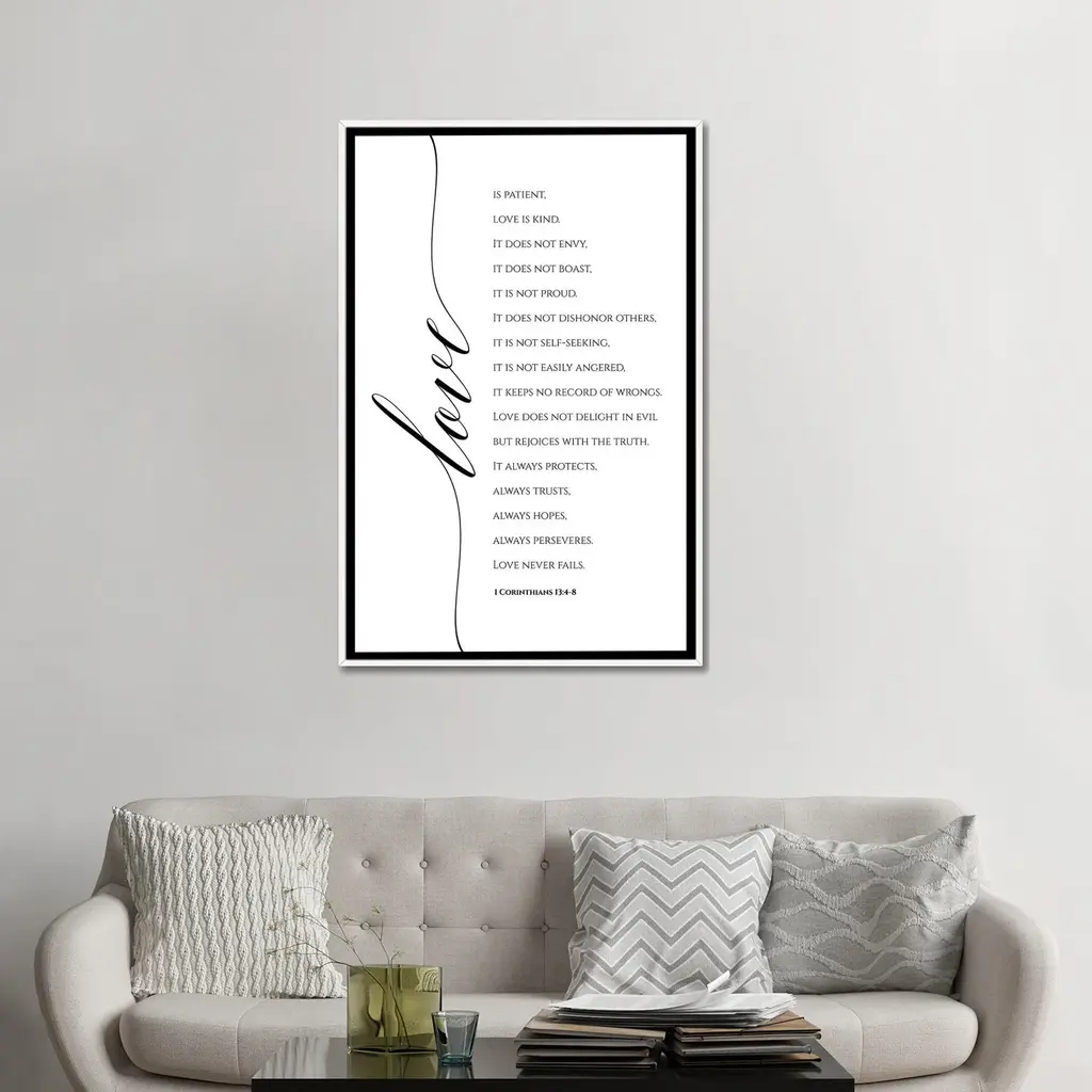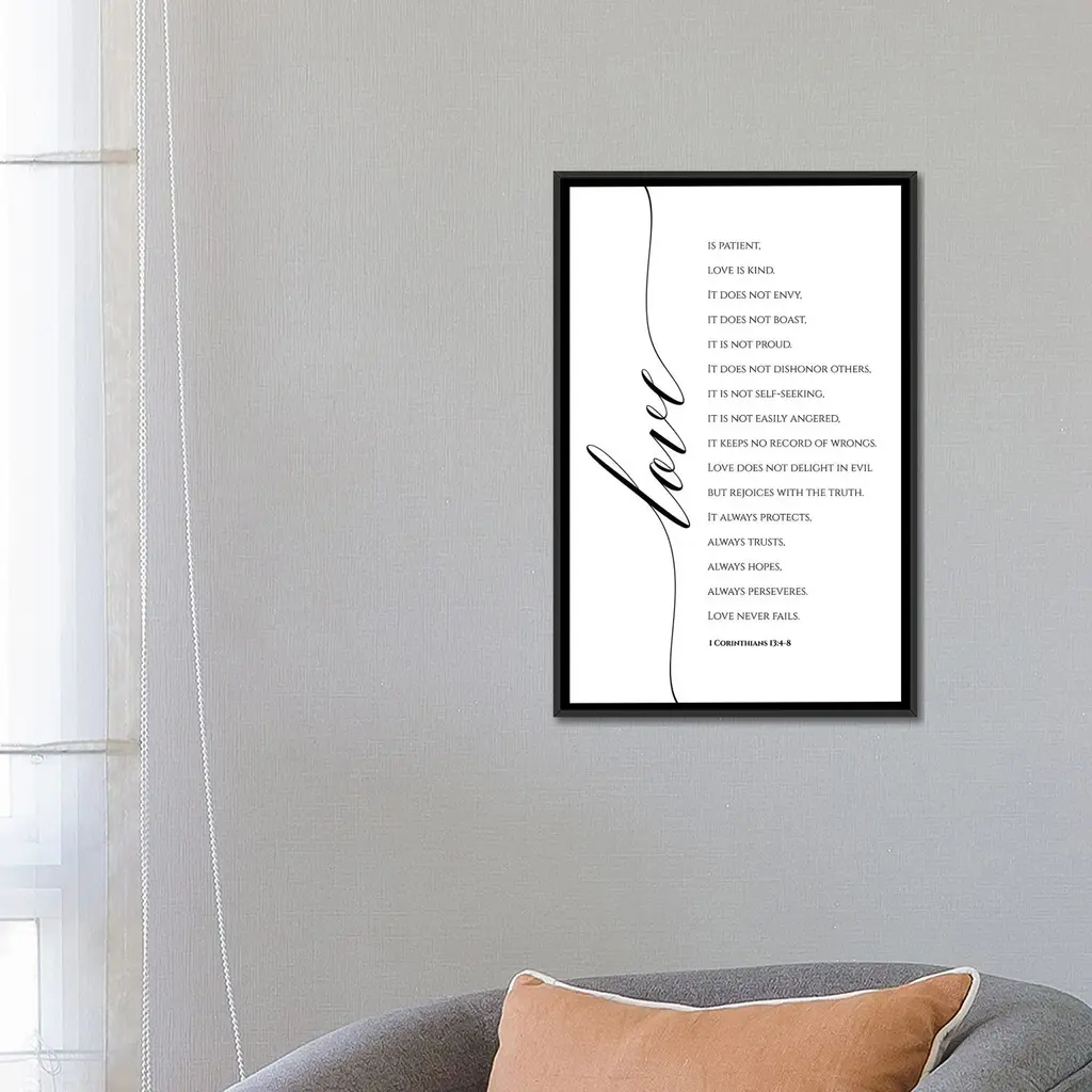 Icanvas "Love Is Patient, Love Is Kind, 1 Corinthians 13-4-8" By Eden Printables Framed Canvas Print - Gold - 48x32
