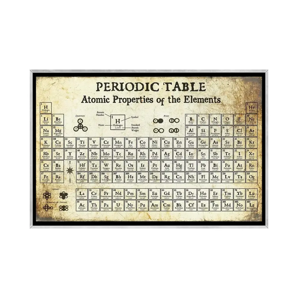 Icanvas "Periodic Table Of Elements, Light" By Piddix Framed - Charcoal - 26x40