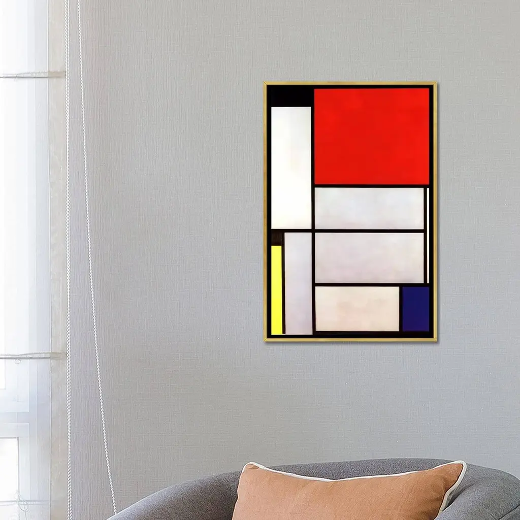 Icanvas "Tableau L, 1921" By Piet Mondrian Framed Canvas Print - Black - 48x32