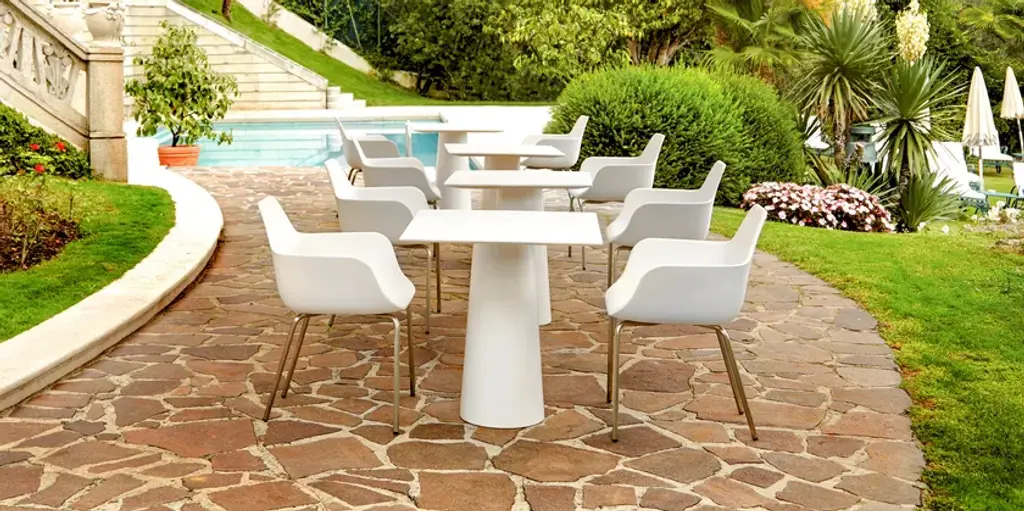 Ice Table, realized with a conical base and a thin squared top, is completely made of polyethylene, a material particularly recommended for the production of outdoor furniture because of its resistance to the effects of time and weather. Ice Table is simple as a monolith, but at the same time modern and stylish, easy to stock and to move, for different set ups with very various colours.Materials: polyethylene frame, polypropylene top.Size: top 70x70 cm; H 74 cm