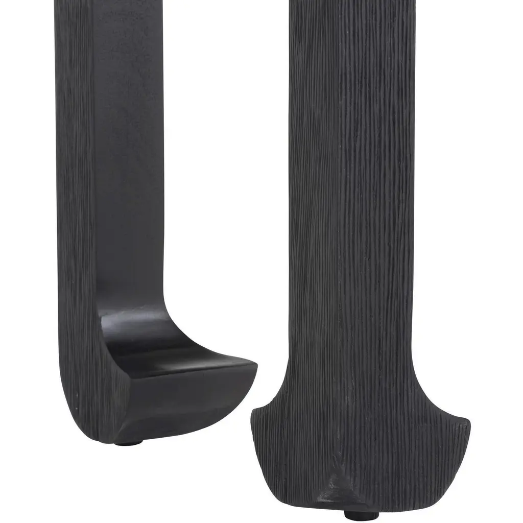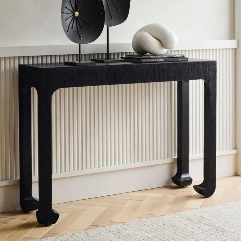 Slim in profile and crafted of ebony mango wood, the traditional parsons-style console is updated with hand-carved claw feet. Finish will vary.
