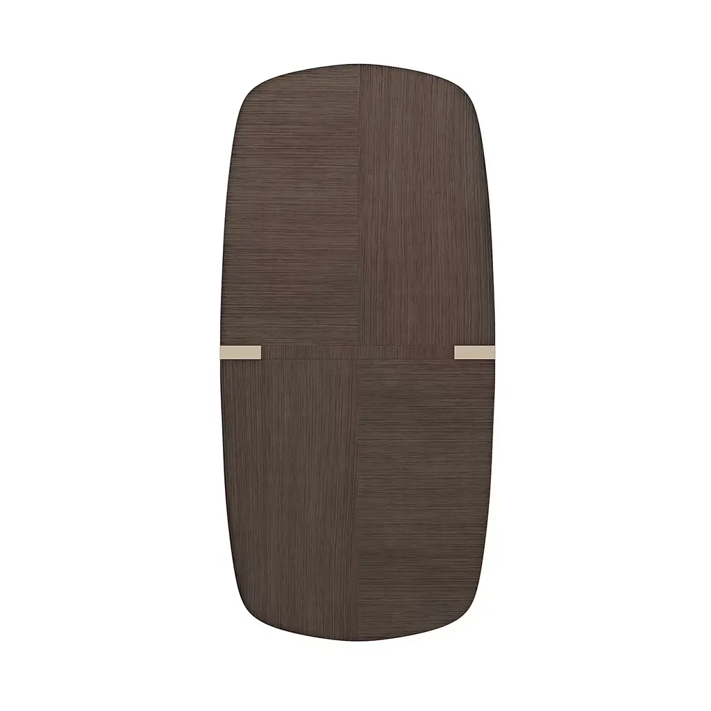 The beautiful mix between natural Walnut wood and golden galvanic metal details is perfect for a Contemporary and luxurious environment. The opposite verse combination of the veneer on the top gives a touch of style to the piece. The seamless pebble shape makes the table more elegant thanks also to the curve bended galvanic gold metal legs. On the top there are two insert golden galvanic metal pieces with the beautiful "HC" logo engraved. The table is also available with a 300cm length top. Please ask Concierge for customization options.