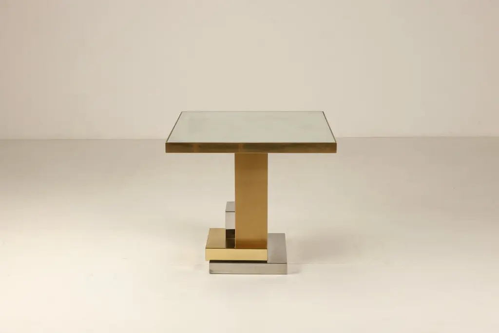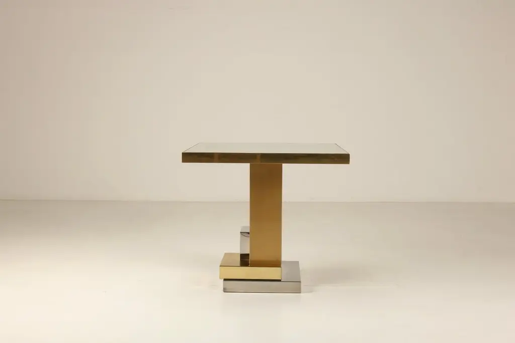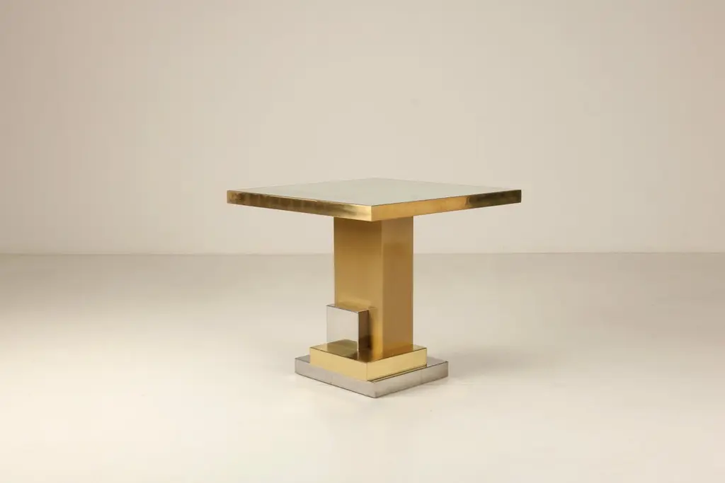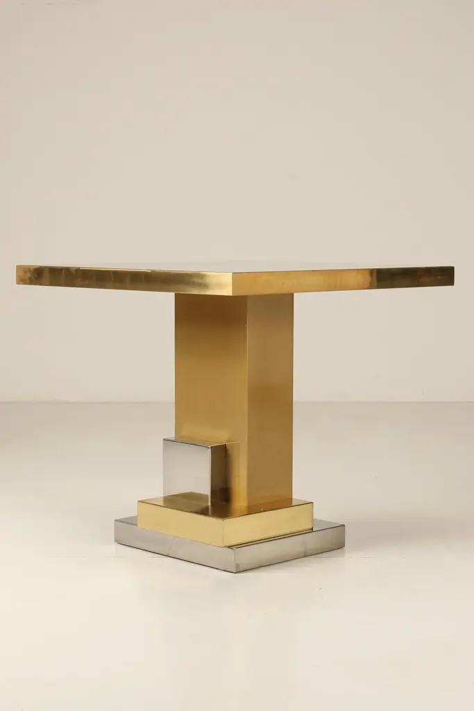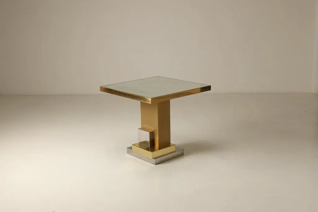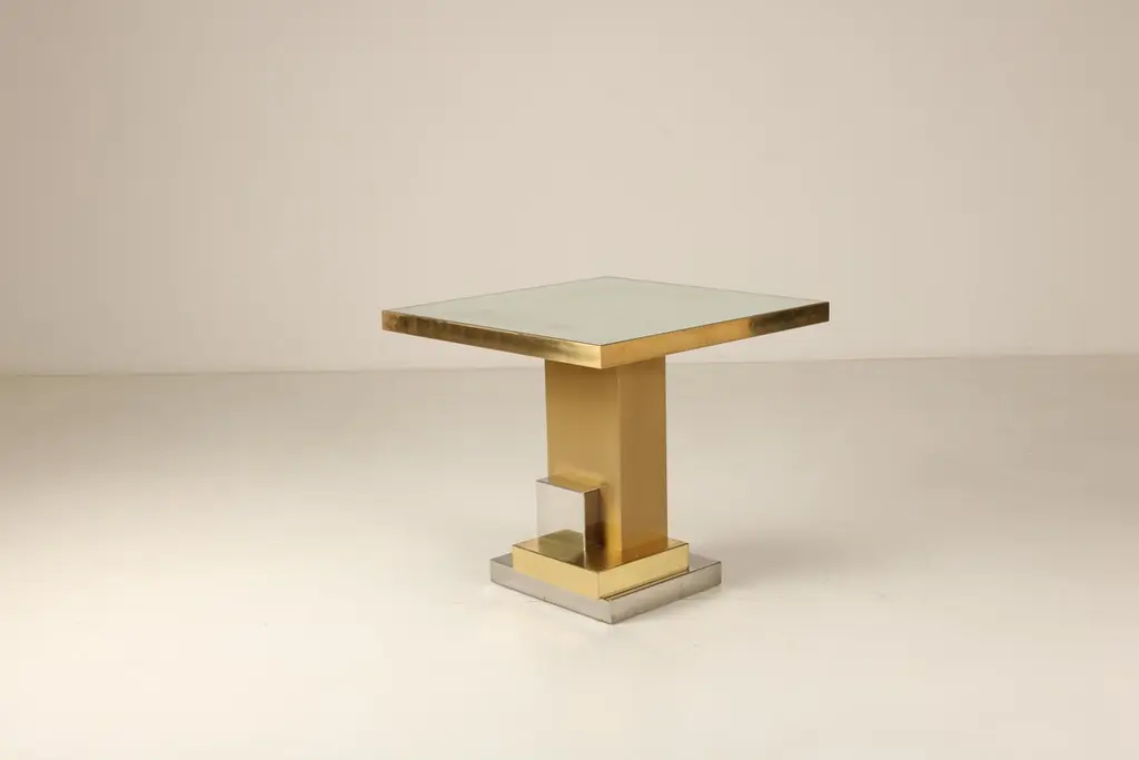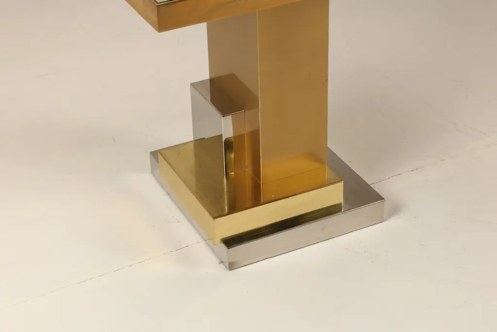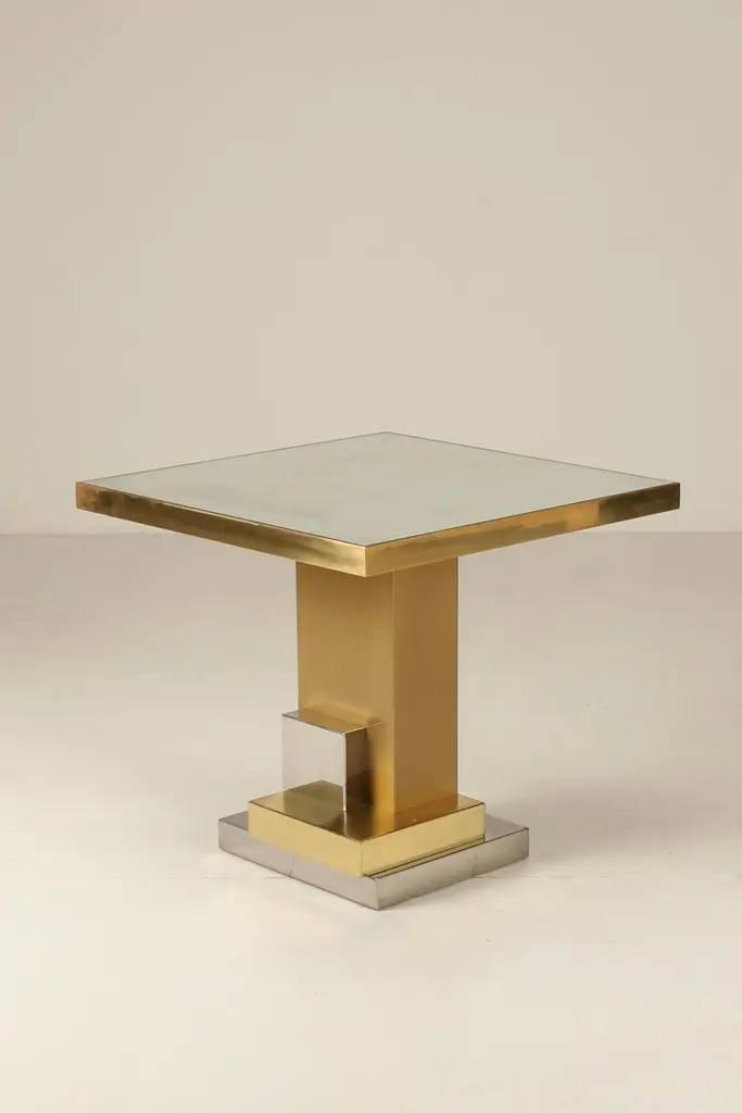 This Iconic Gold Table by Ferruccio Laviani was originally drawn in 2006 for the interiors of Dolce & Gabbana's legendary restaurant Gold. Its polychrome nuances in gold and its geometric and sophisticated lines makes it the ideal decor for both classic and contemporary ambiences. A splendid example of contemporary Italian Design, the table has brass and chromium-plated structure with a mirrored glass top. Overall good conditions, it presents minor scratches. Ferruccio Laviani is an acclaimed Italian designer born in 1960 who has left an indelible mark on the design world with his cutting-edge and eclectic creations. Globally admired for his idiosyncratic style, his design seamlessly merges functionality with aesthetics. His prolific career includes collaborations with prestigious brands such as the Italian luxury fashion house Dolce and Gabbana, also known as D&G. The Gold Table were originally draw as interior design of the restaurant opened by fashion designers Stefano Gabbana and Domenico Dolce for their sophisticated restaurant in Indipendenza, Milan active between 2006-15. L'iconico tavolo Gold di Ferruccio Laviani è stato disegnato nel 2006 per gli interni del leggendario ristorante Gold di Dolce & Gabbana a Milano. Le sfumature policrome in oro e il taglio geometrico lo rendono un arredo unico e sofisticato, ideale per ambienti sia classici che contemporanei. Splendido esempio di design italiano contemporaneo, il tavolo ha struttura in ottone e metallo cromato con piano in vetro specchiato. In buone condizioni generali, presenta lievi graffi. Ferruccio Laviani è un acclamato designer italiano nato nel 1960 che ha lasciato un segno indelebile nel mondo del design. Ammirato in tutto il mondo, le sue creazioni eclettiche mergono splendidamente funzionalità ed estetica. Nel corso della sua prolifica carriera, Laviani ha collaborato con brand prestigiosi come il brand di lusso Dolce&Gabbana per gli arredi interni del Gold, esclusivo ristorante aperto dagli stilisti a Milano, attivo tra il 2006 e il 2015.